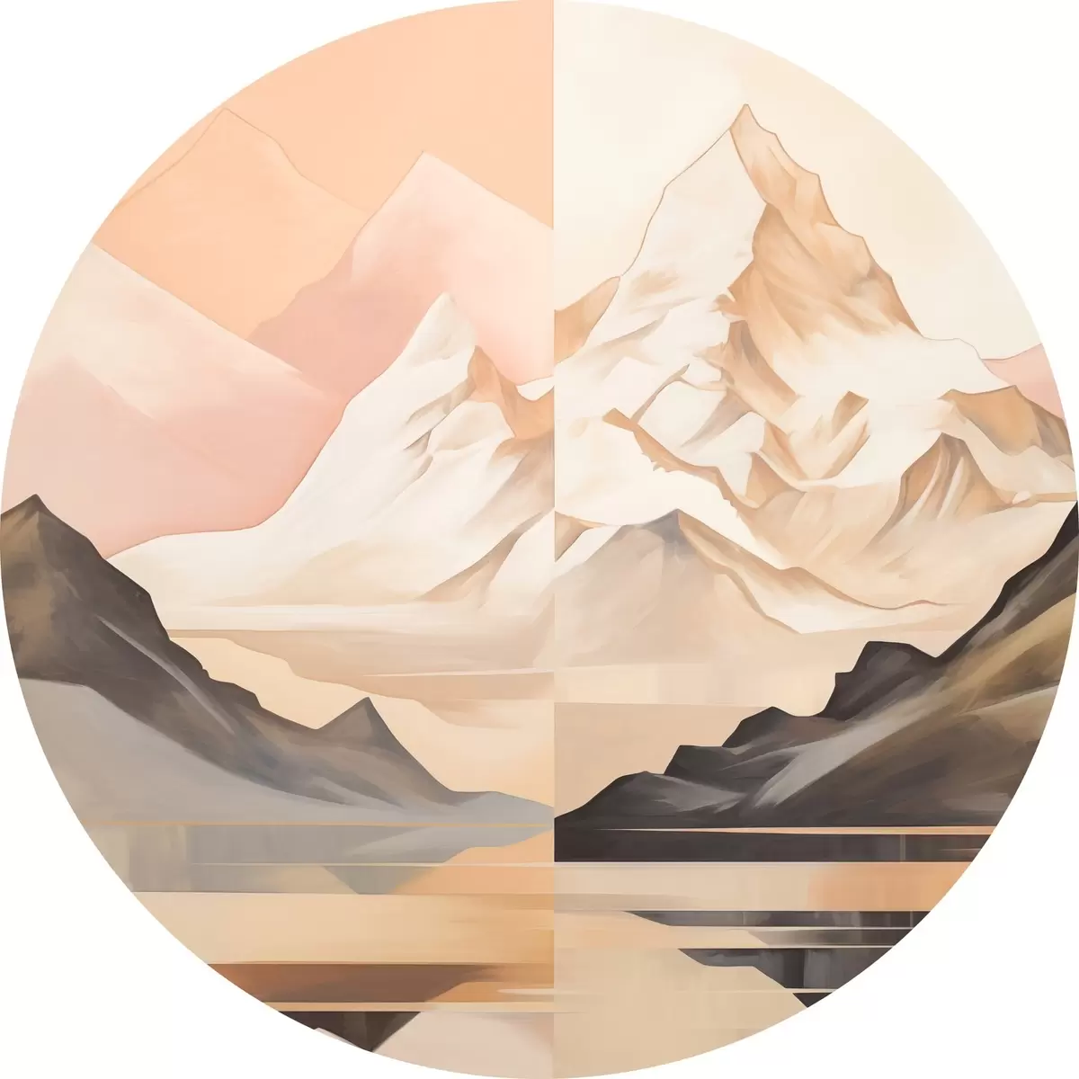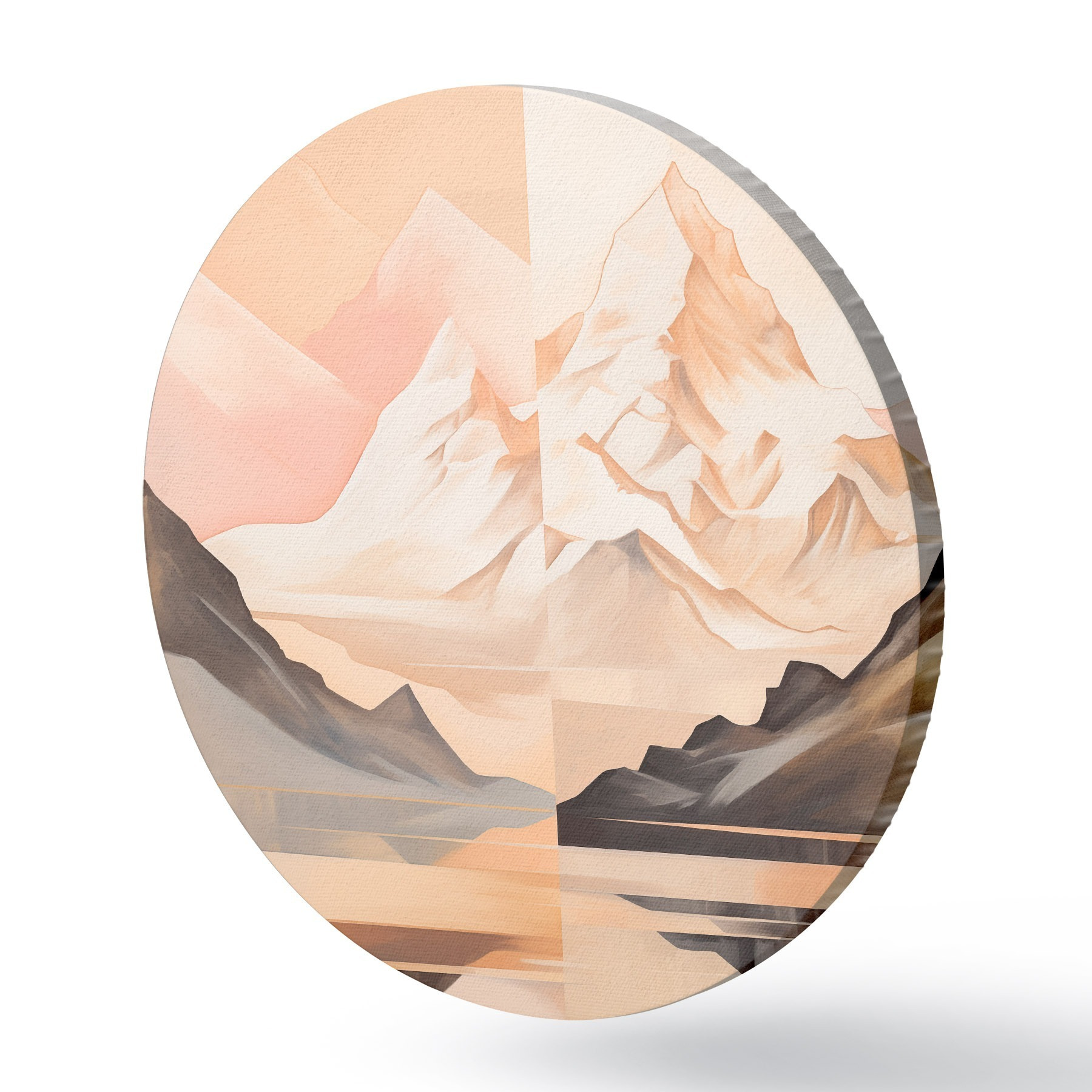 Apaļas gleznas Abstrakts ainava ar kalniem un ezeru, pasteļtoņos, minimālisma stilā r45948
