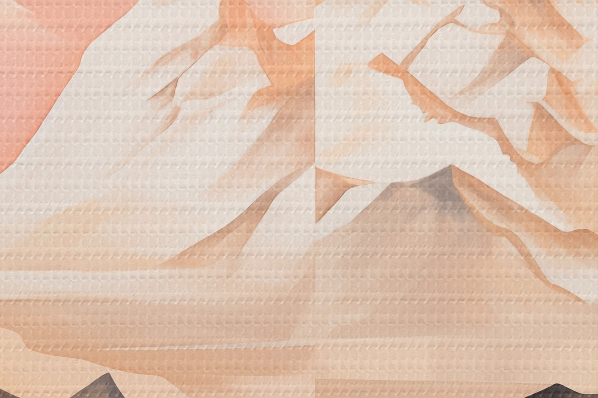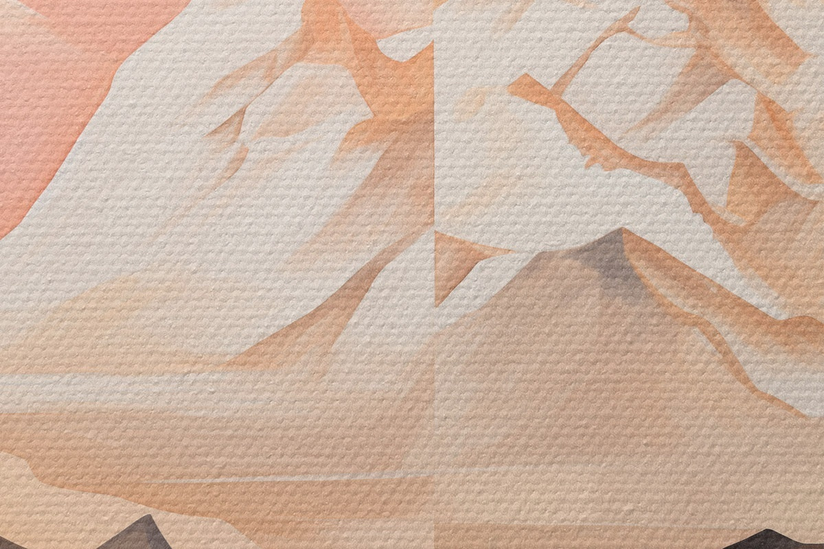 Attēls Abstrakts ainava ar kalniem un ezeru, pasteļtoņos, minimālisma stilā Nr r45948