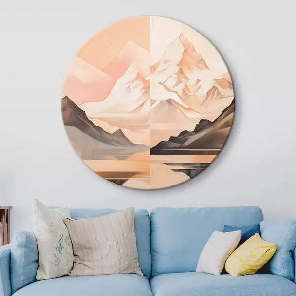 Apaļas gleznas Abstrakts ainava ar kalniem un ezeru, pasteļtoņos, minimālisma stilā r45948