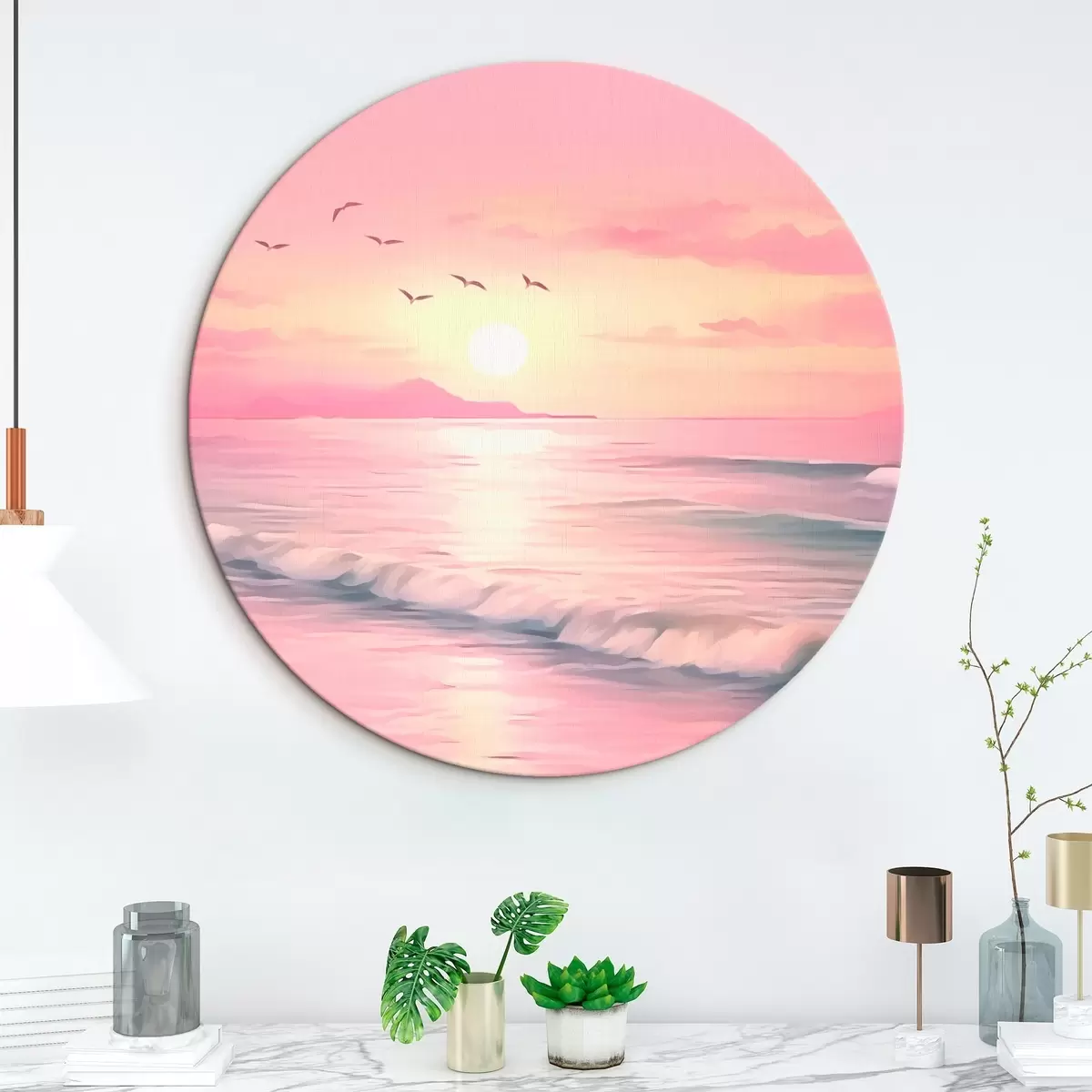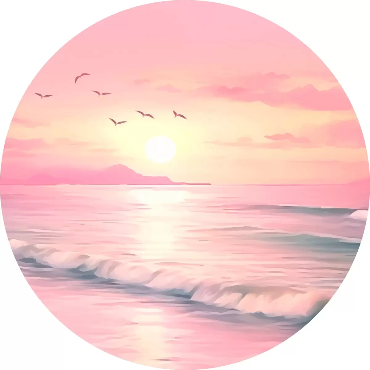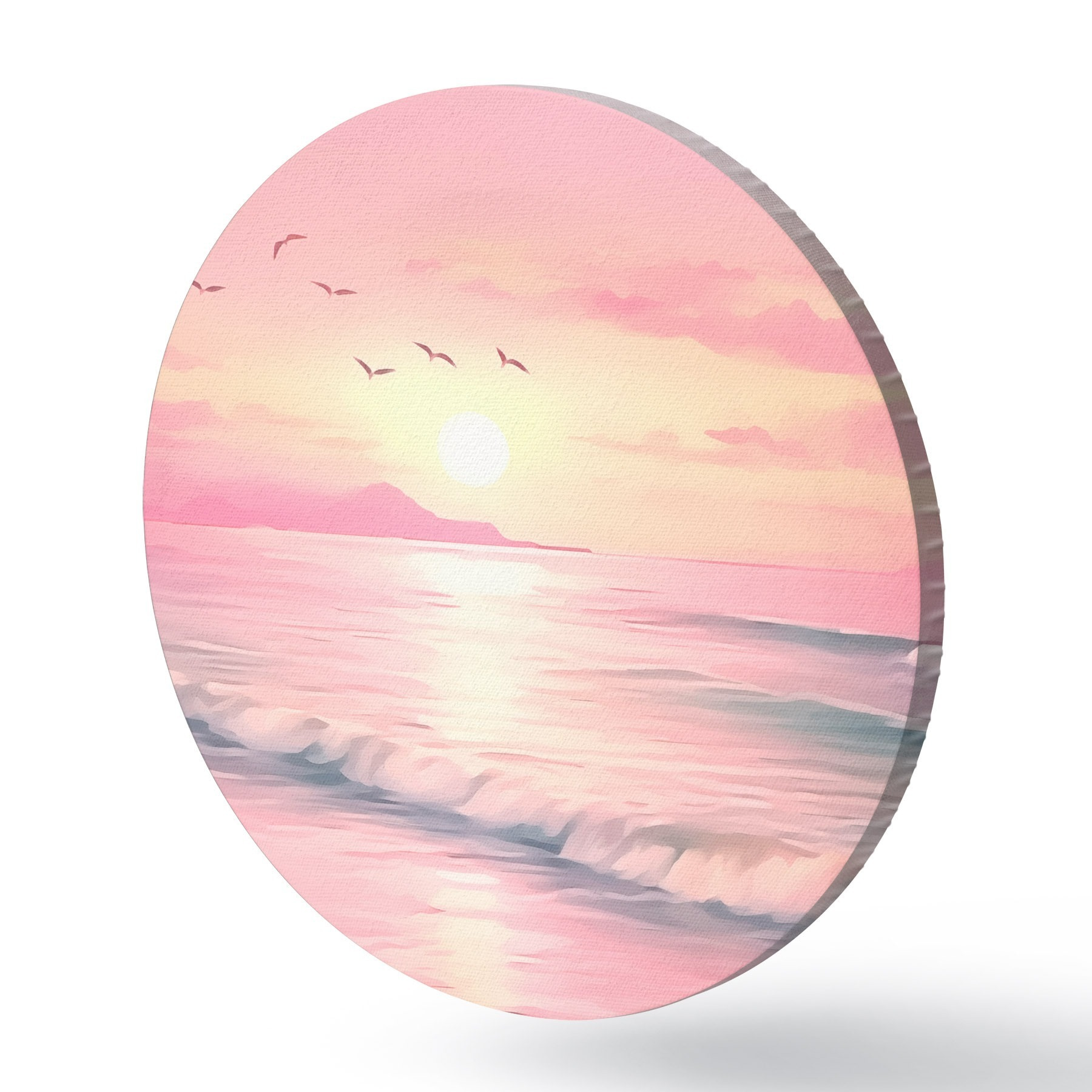 Apaļas gleznas Rozā saulriets virs jūras r45955