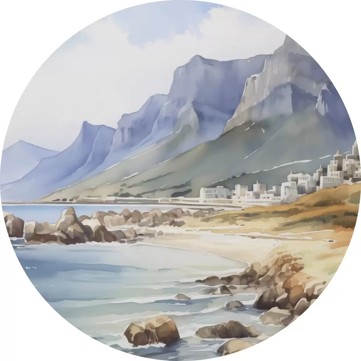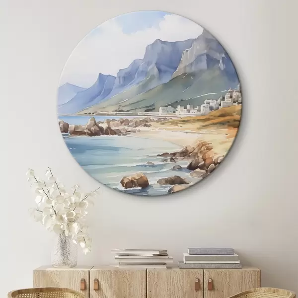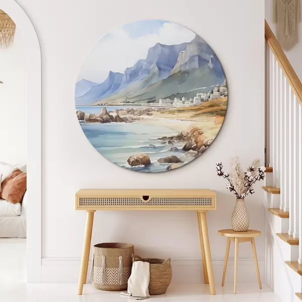 Apaļas gleznas Jūras krasta akvareļa imitācija r45978