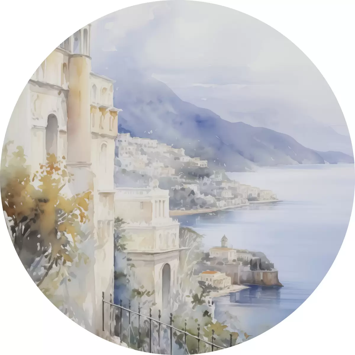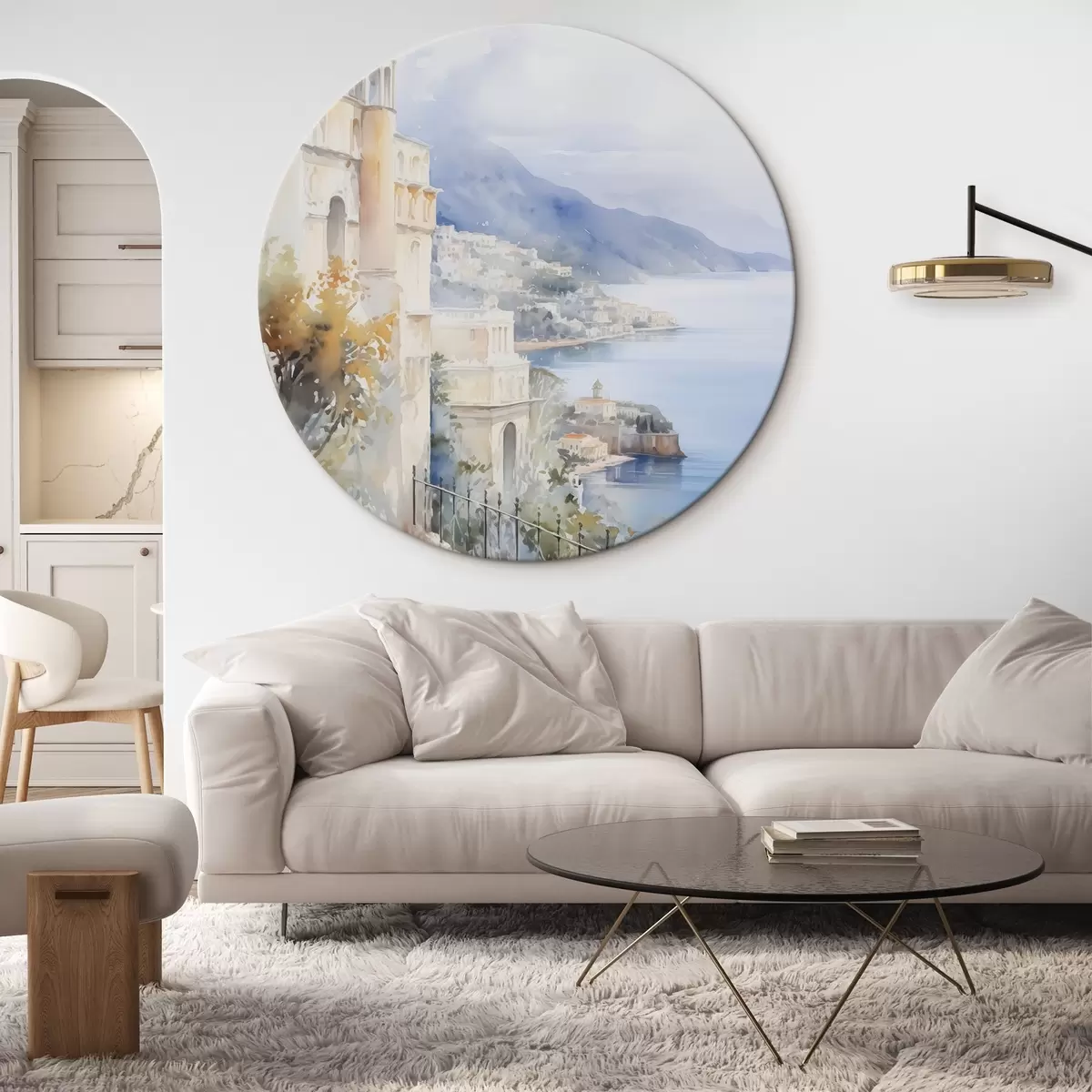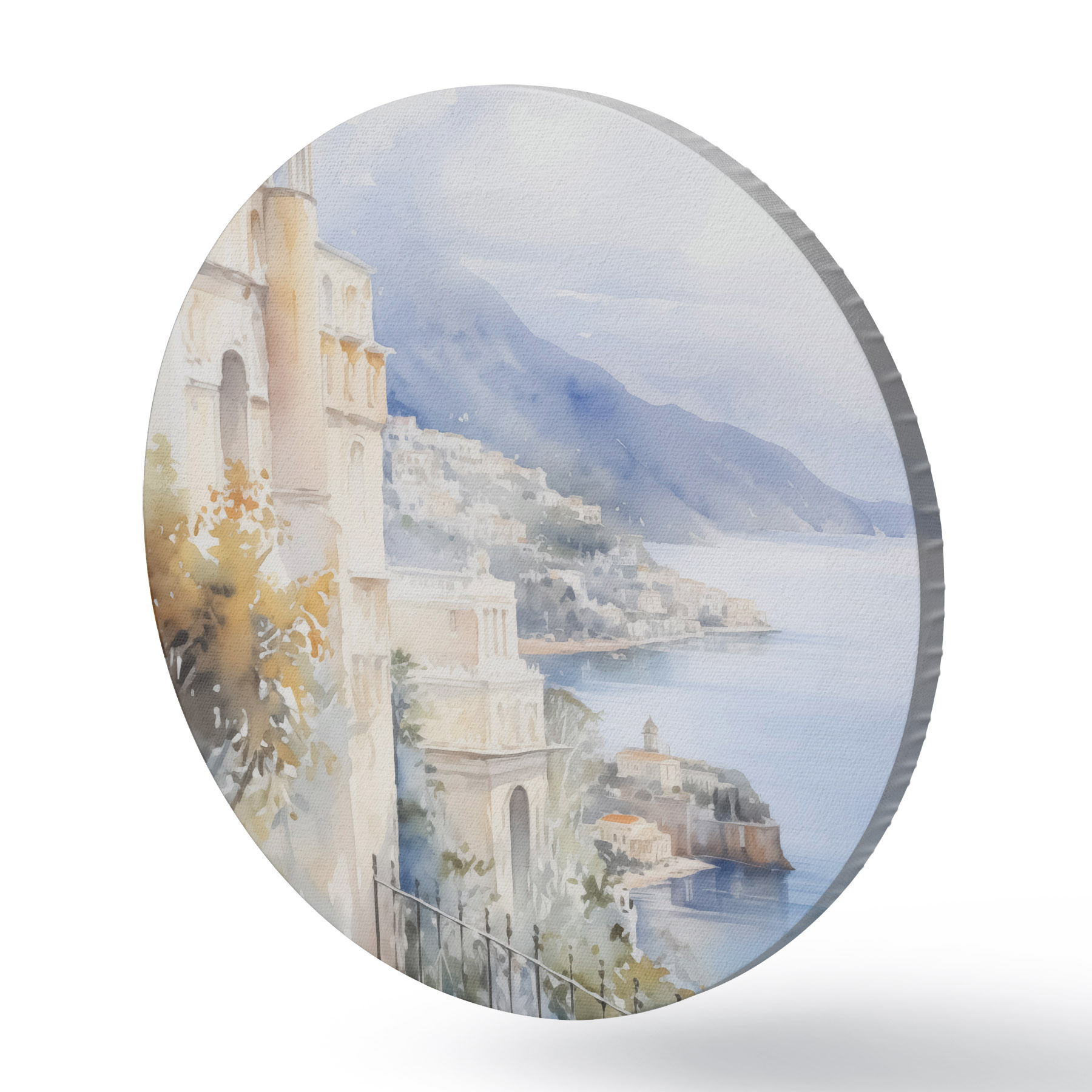 Apaļas gleznas Līcis pie pilsētas akvareļa imitācija r45979