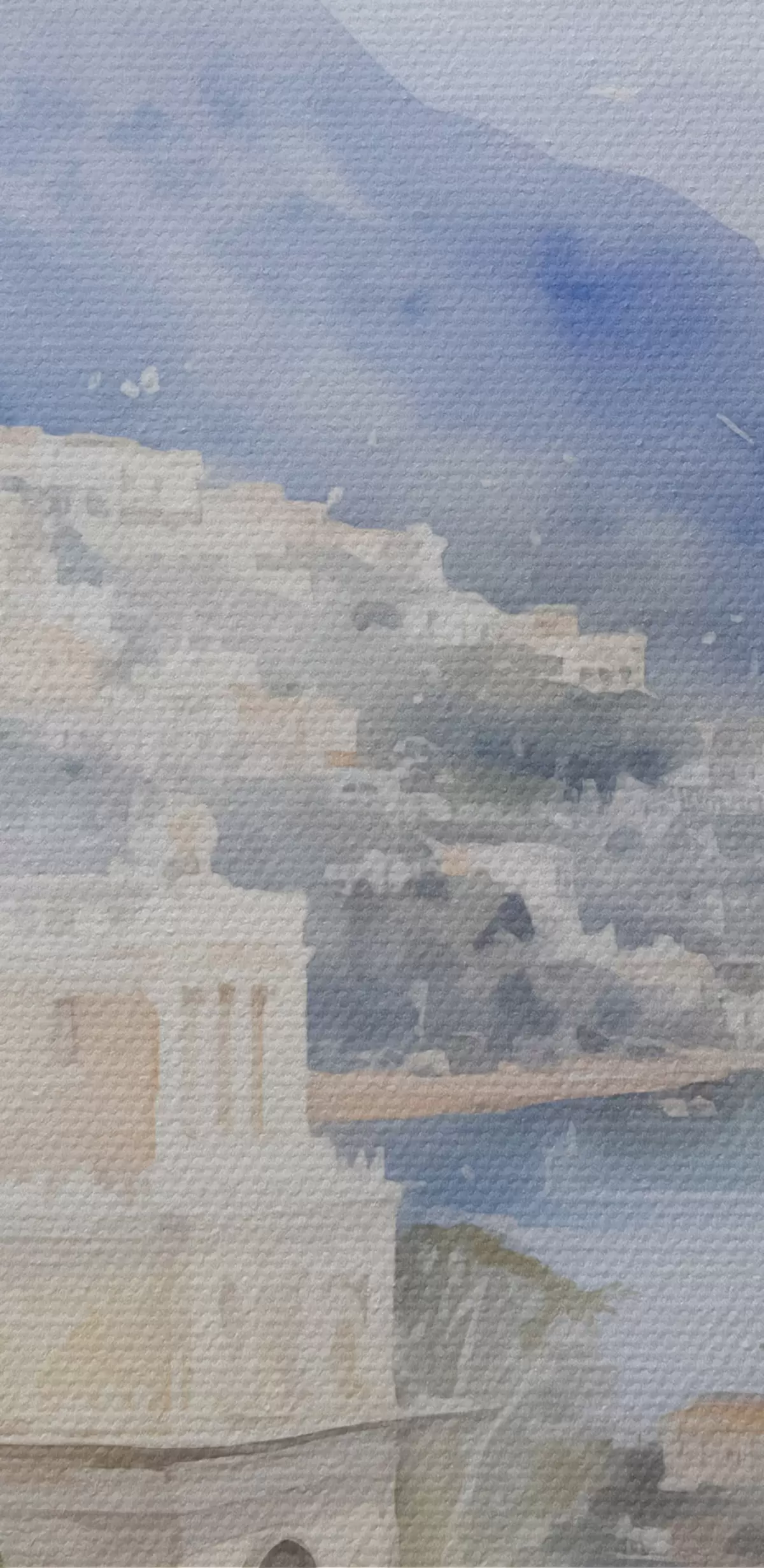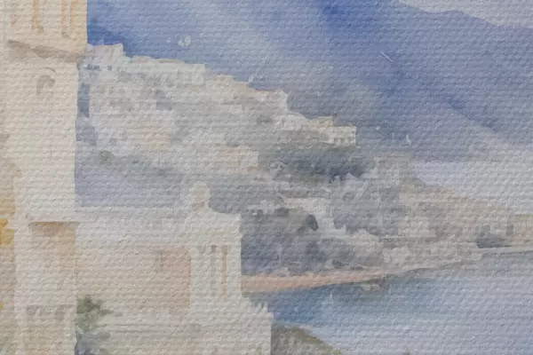 Attēls Līcis pie pilsētas akvareļa imitācija Nr r45979