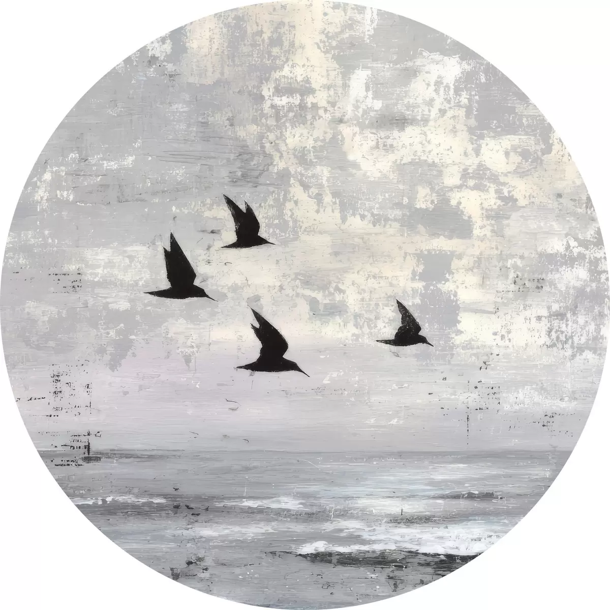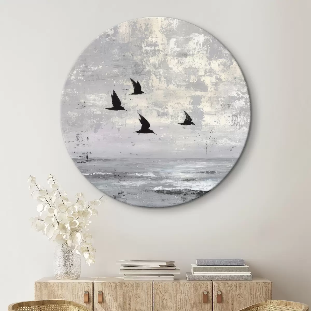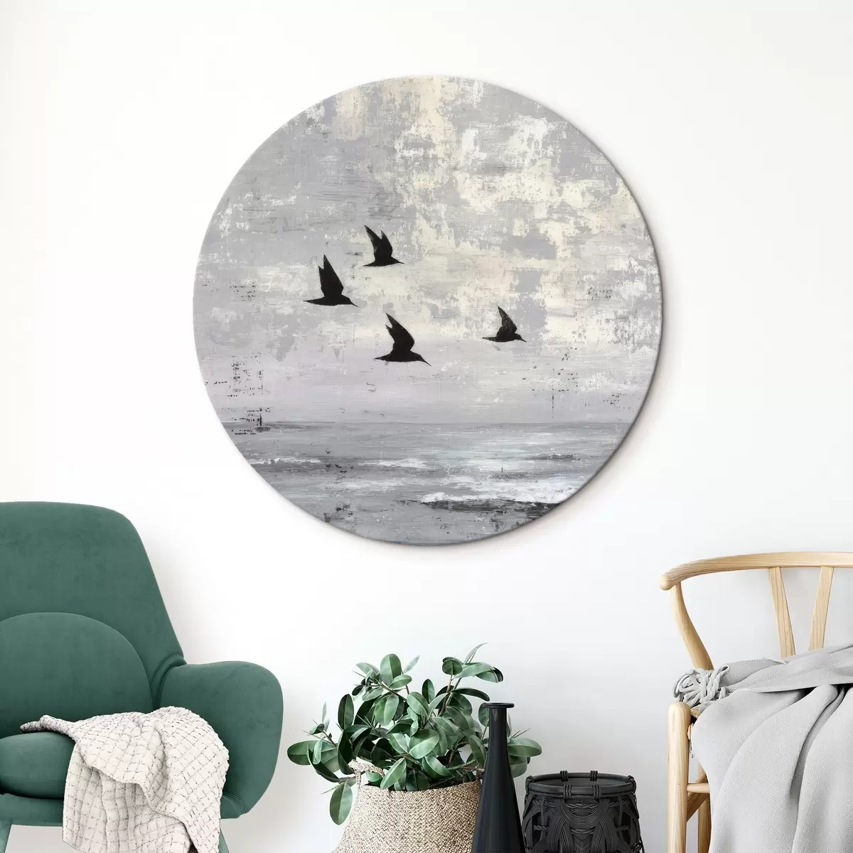 Apaļas gleznas Abstrakts ainavas ar putniem r45988