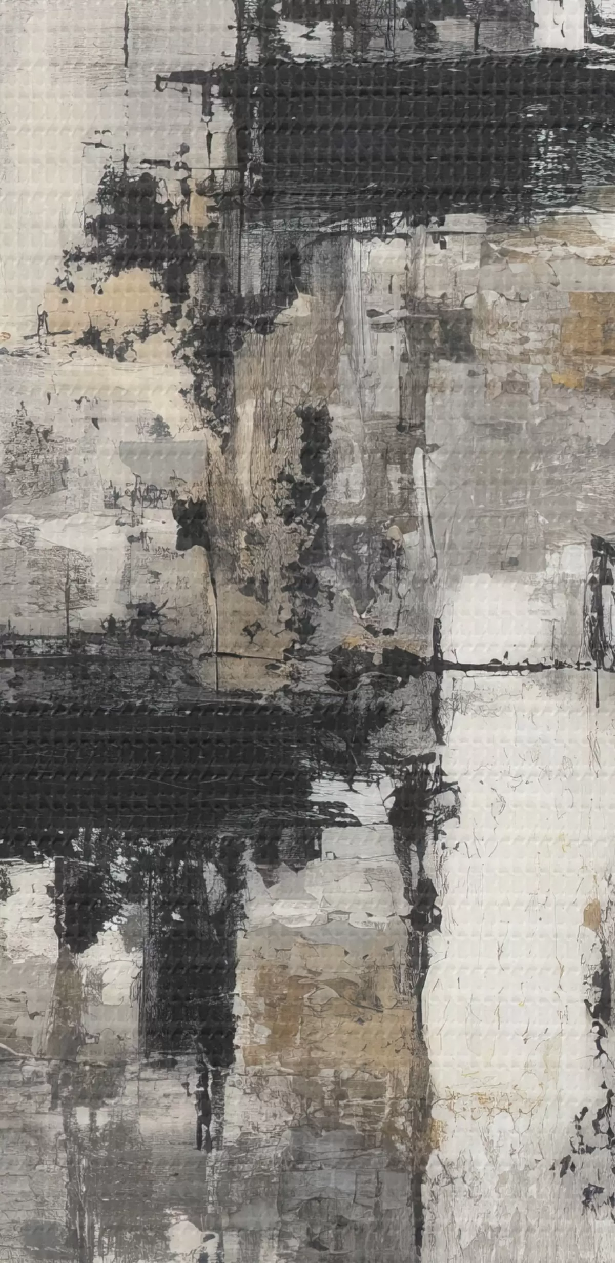 Smalkais diegu pinums uz šī audekla atgādina profesionālu mākslinieku audeklu virsmu.