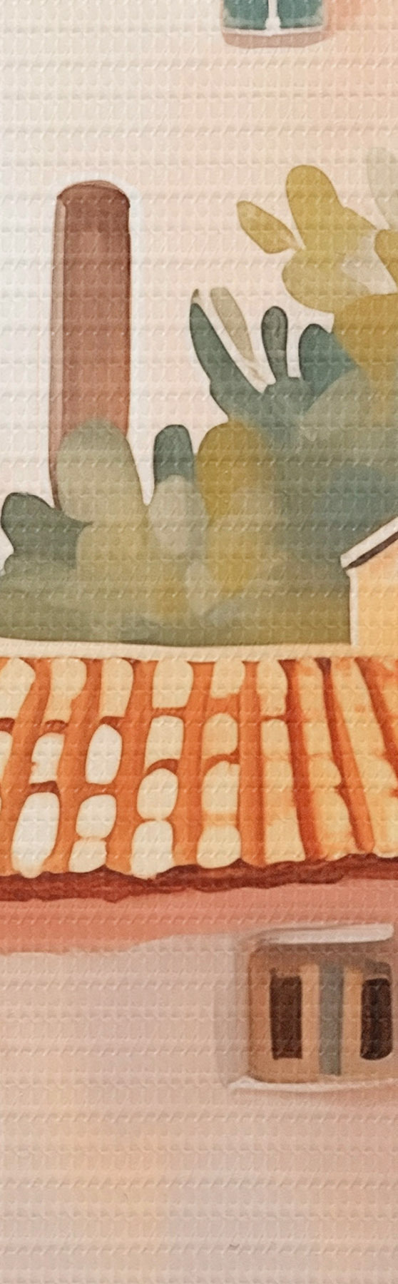 Smalkais diegu pinums uz šī audekla atgādina profesionālu mākslinieku audeklu virsmu.
