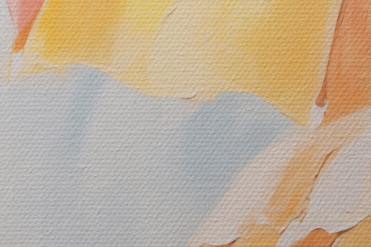 Smalkais diegu pinums uz šī audekla atgādina profesionālu mākslinieku audeklu virsmu.