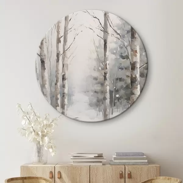 Apaļas gleznas Bērzu koki ziemas mežā r46129