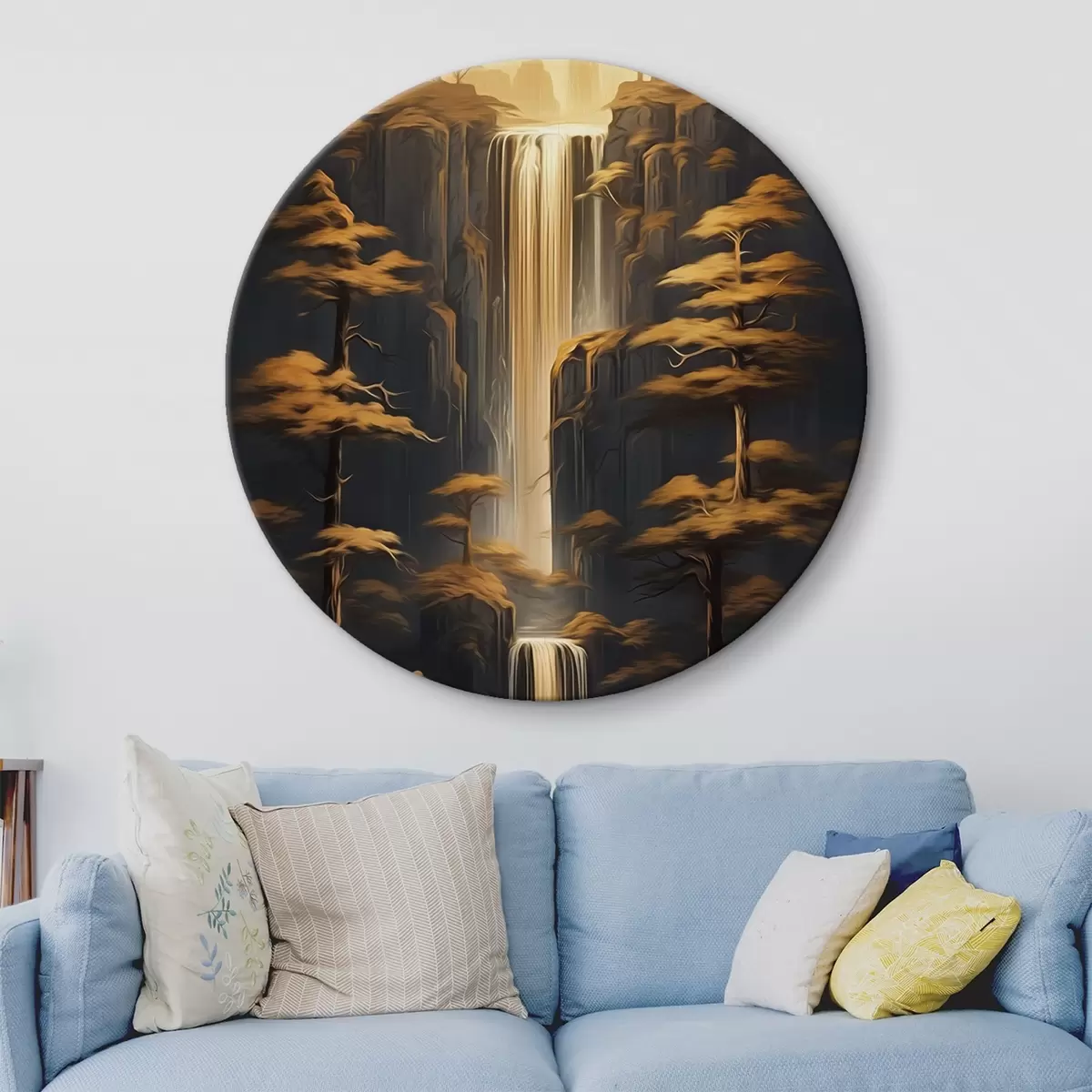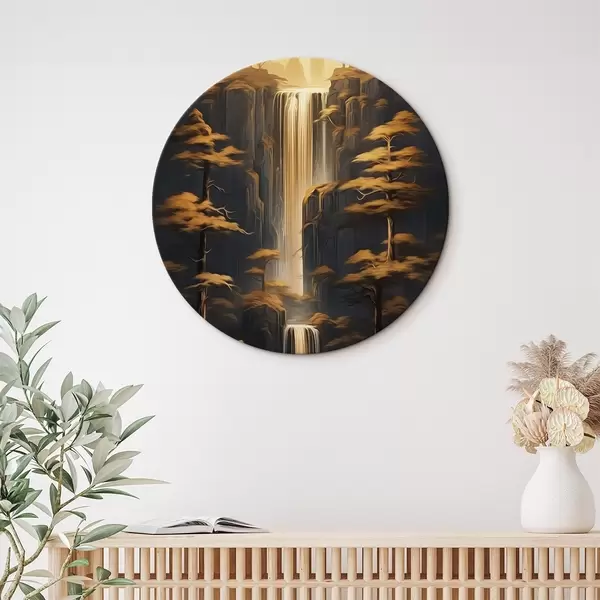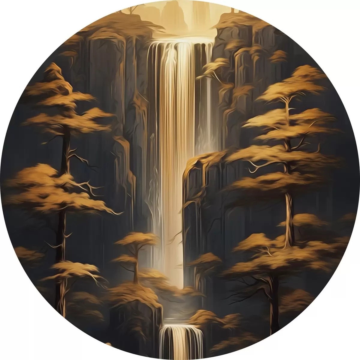 Apaļas gleznas Augstas klintis ar ūdenskritumu un priedes vakara gaismā r46151