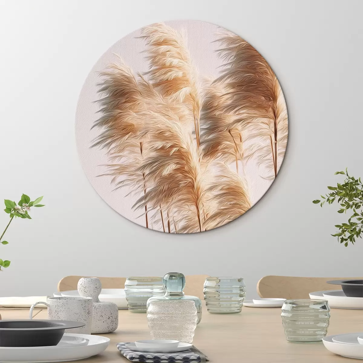 Apaļas gleznas Pūkaina dekoratīvā zāle uz gaiša fona r46157