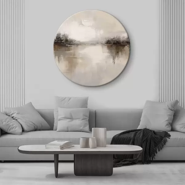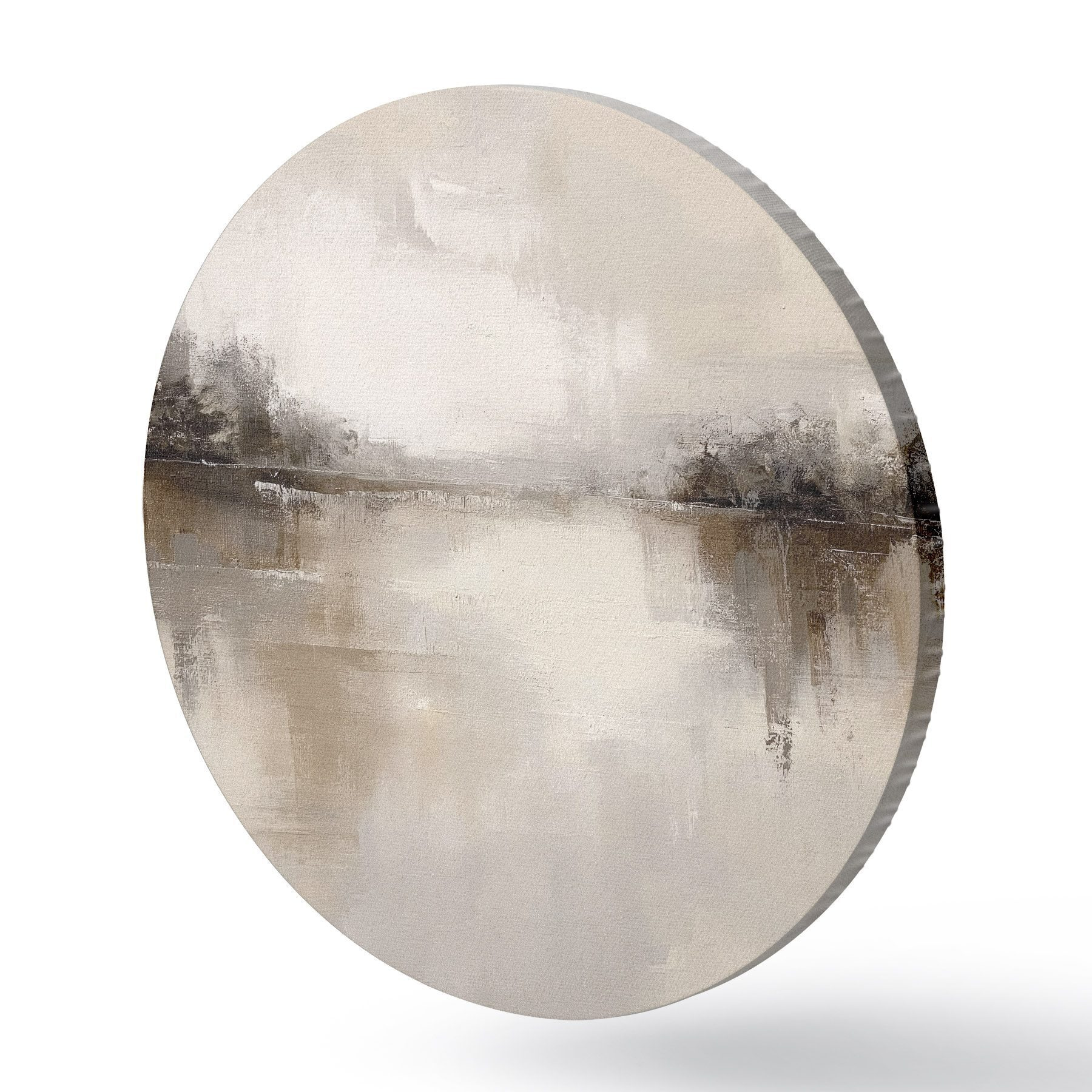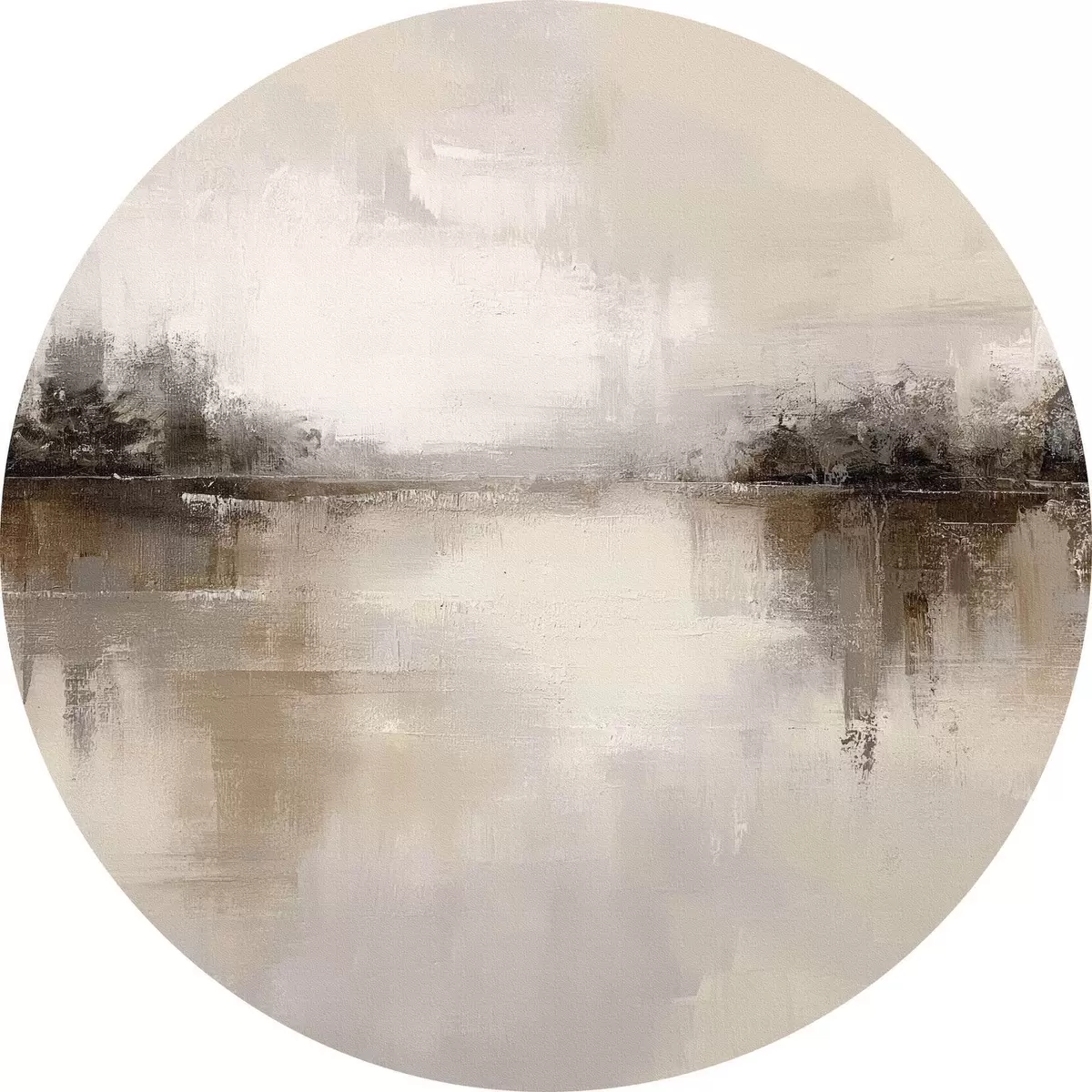 Apaļas gleznas Maigs ainavas skats ar ezeru siltos smilškrāsas toņos r46158
