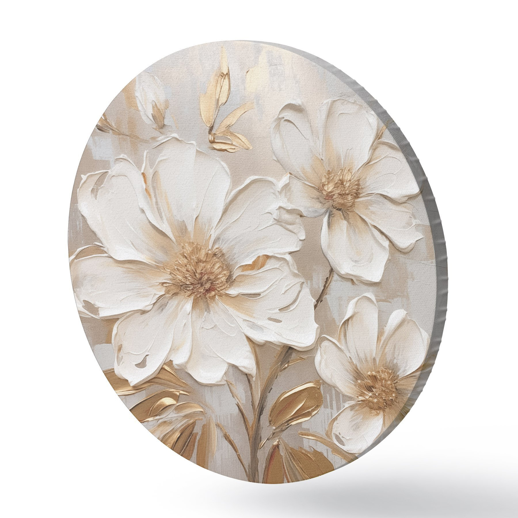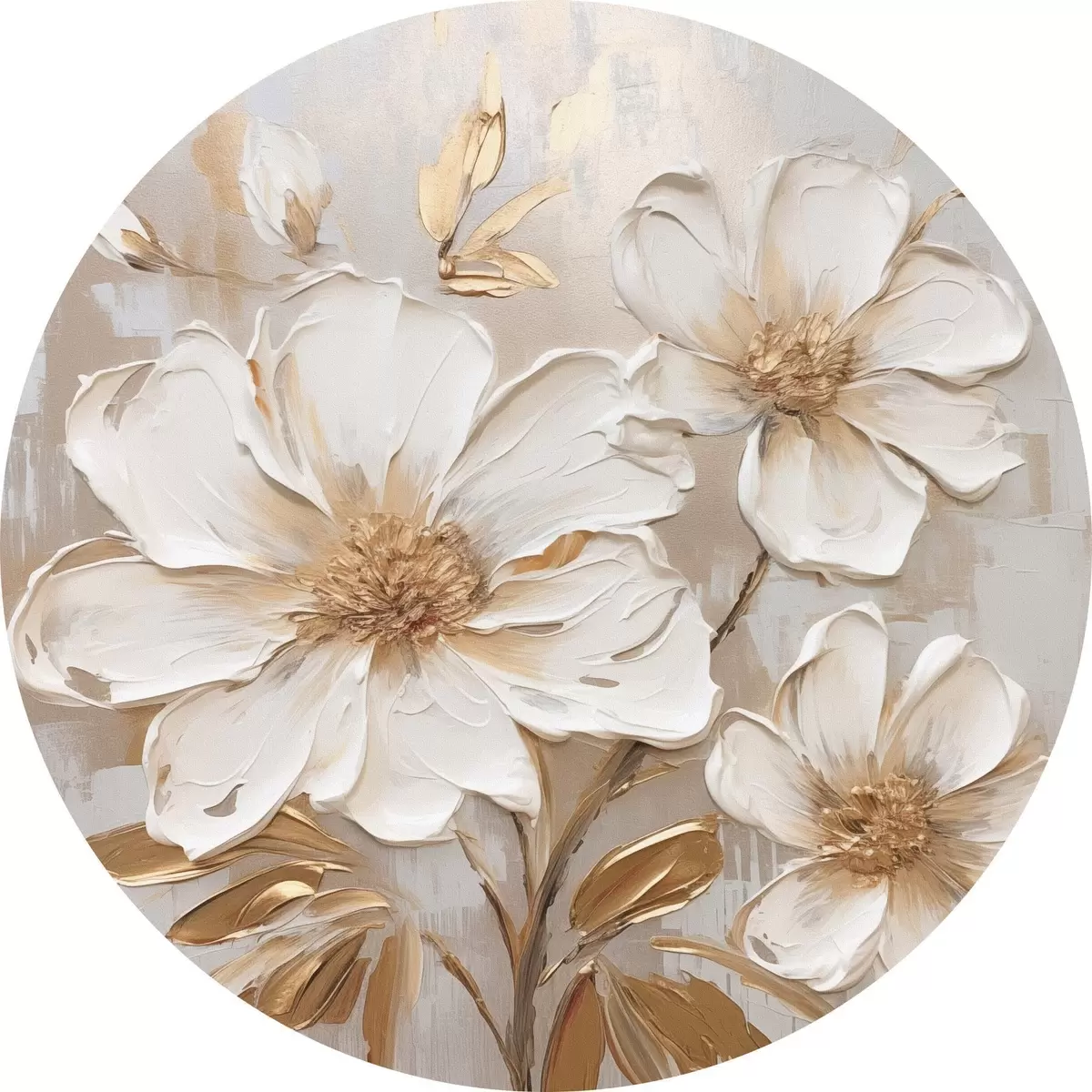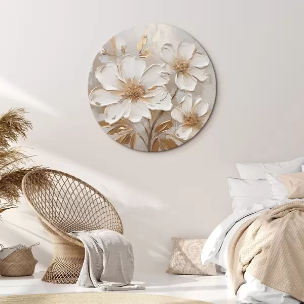 Apaļas gleznas Teksturēti ziedi uz gaiša fona ar siltām nokrāsām r46166