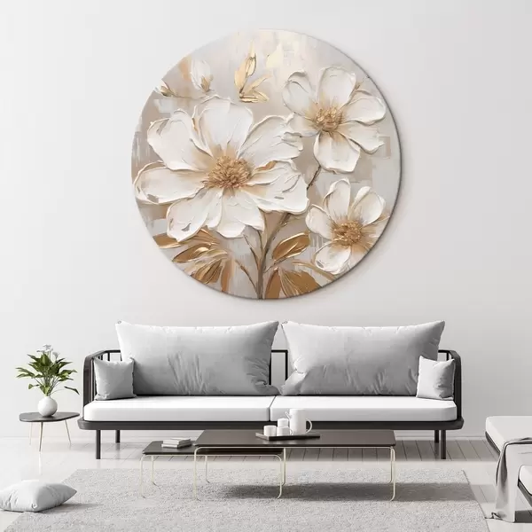 Apaļas gleznas Teksturēti ziedi uz gaiša fona ar siltām nokrāsām r46166