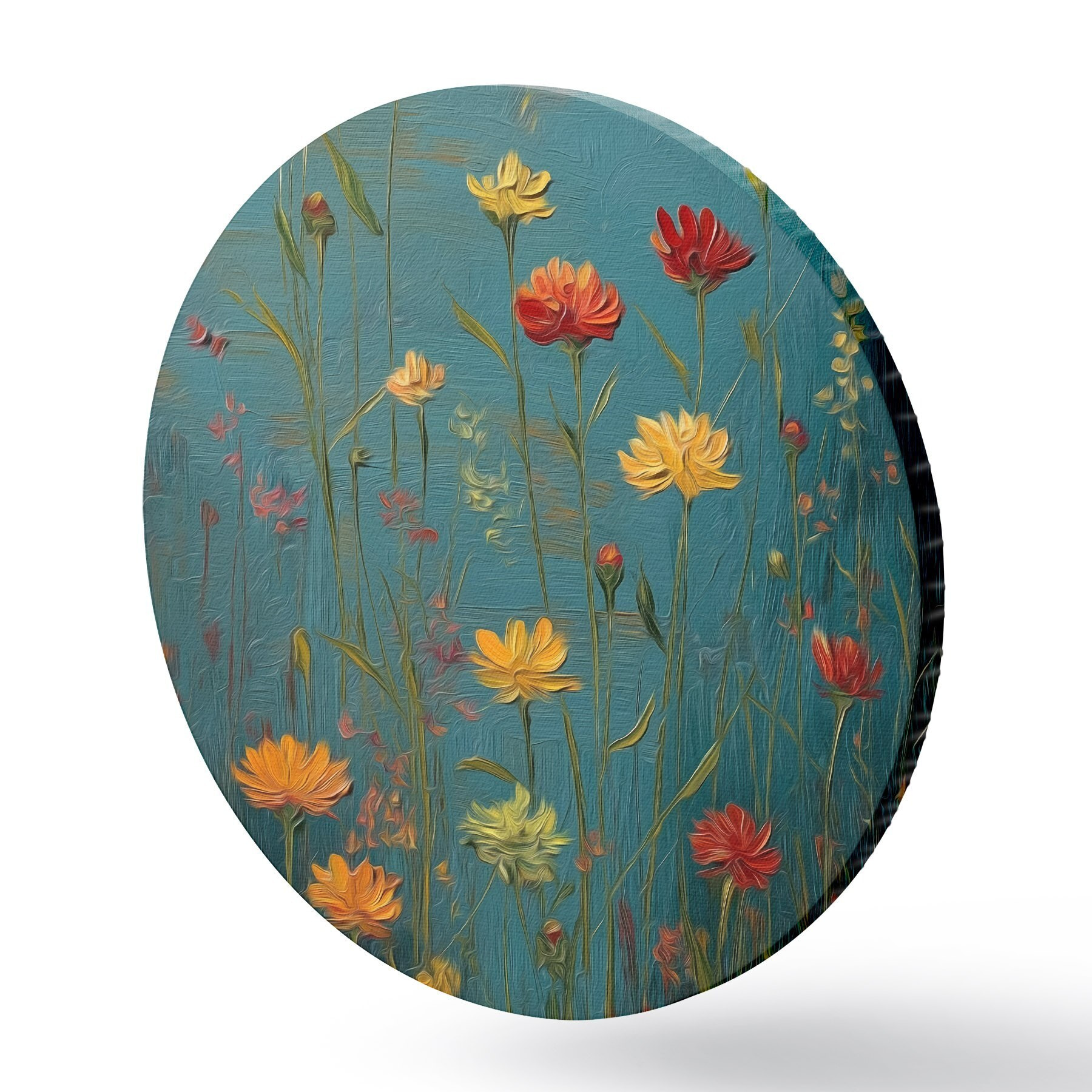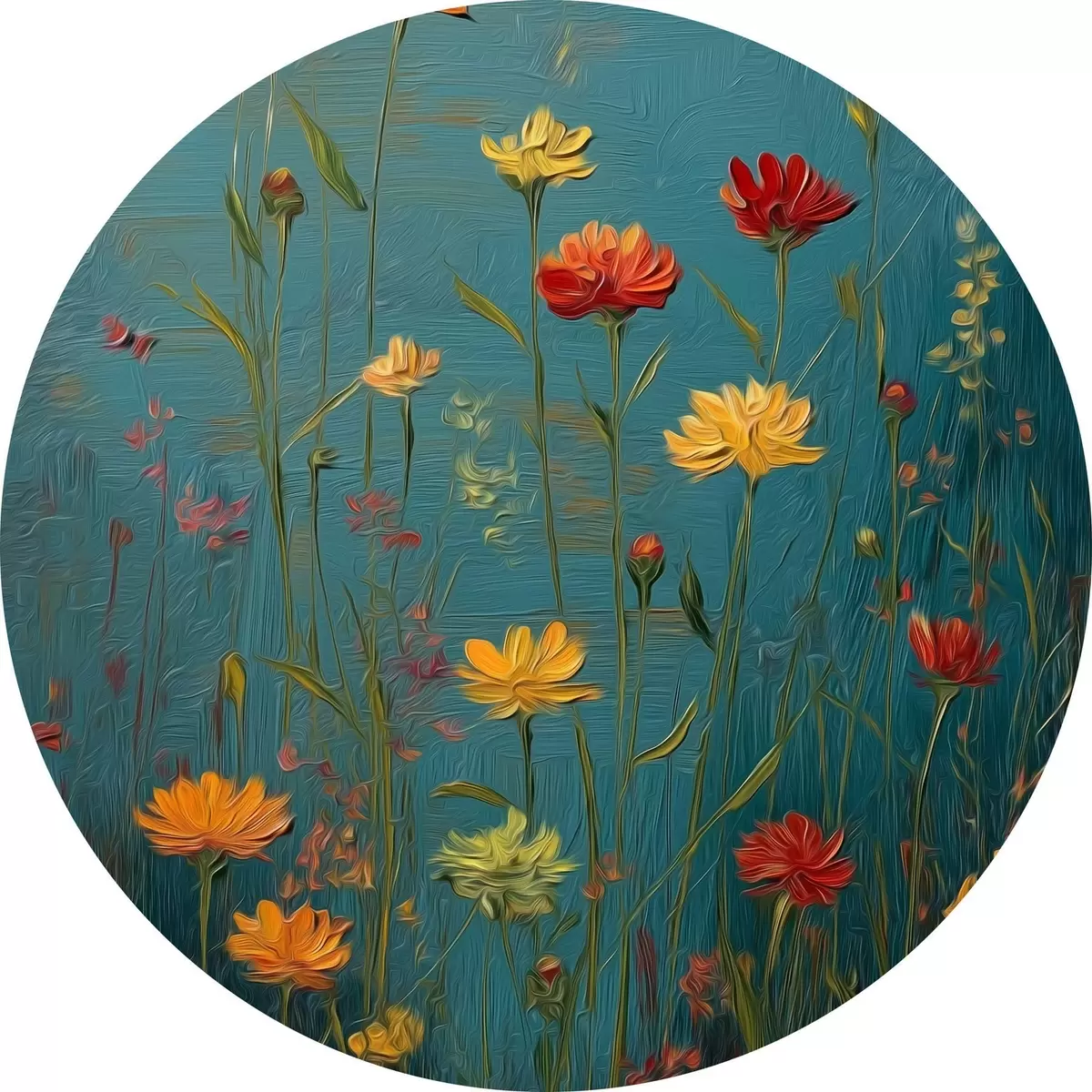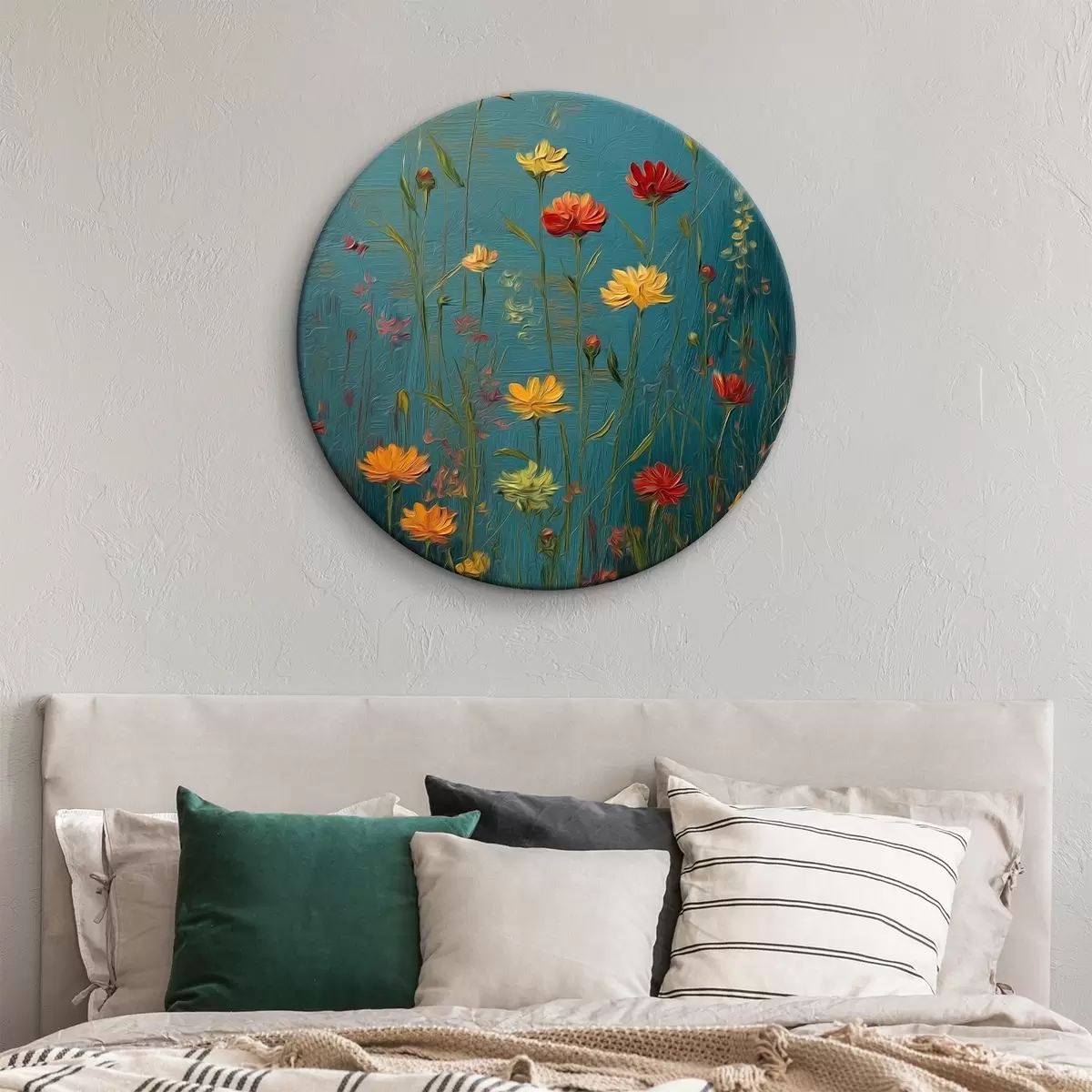 Apaļas gleznas Mežā augoši ziedi uz tumši tirkīza fona r46169