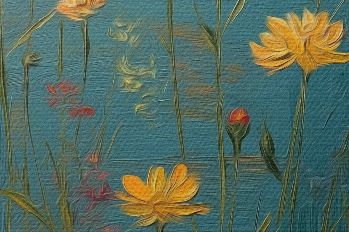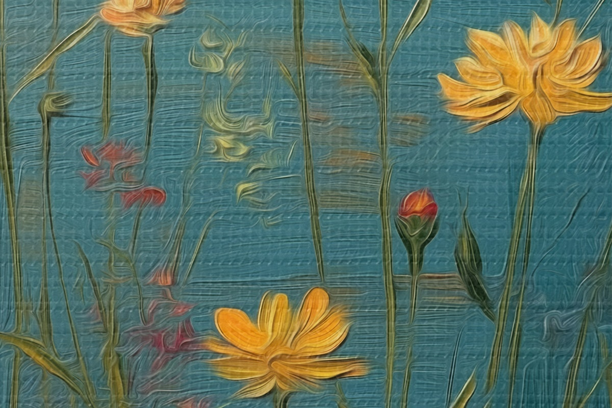 Attēls Mežā augoši ziedi uz tumši tirkīza fona Nr r46169