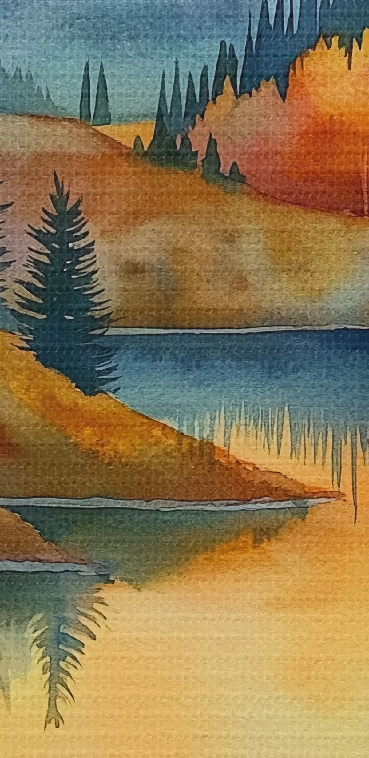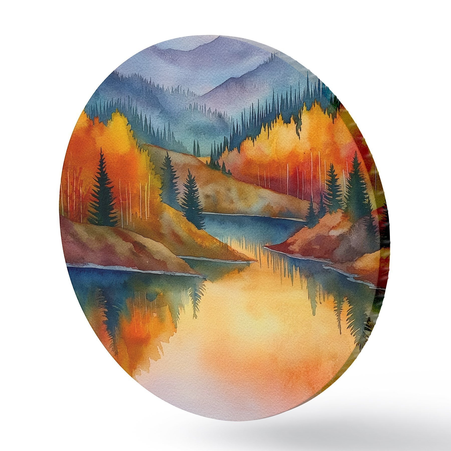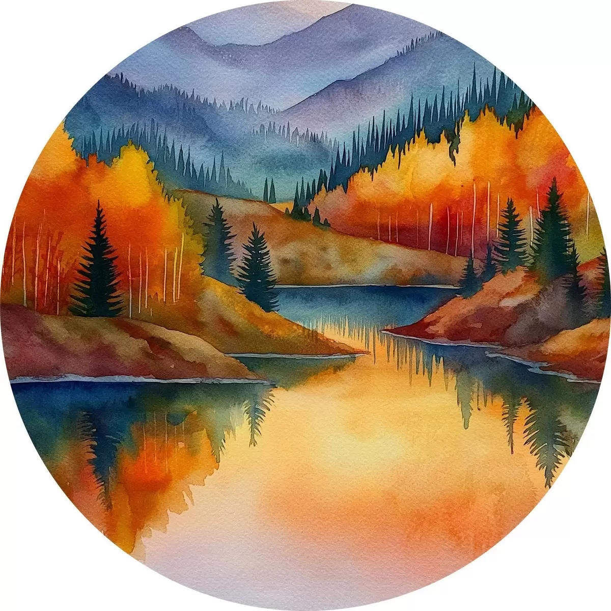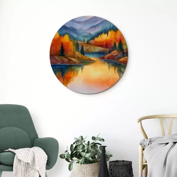 Apaļas gleznas Rudens ainava ar kalniem, kas atspoguļojas mierīgā ezerā r46174