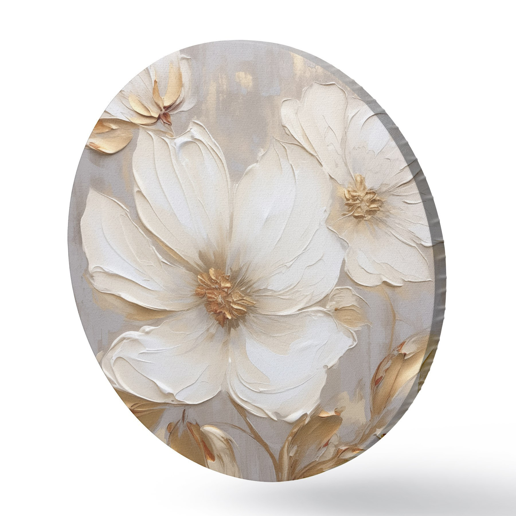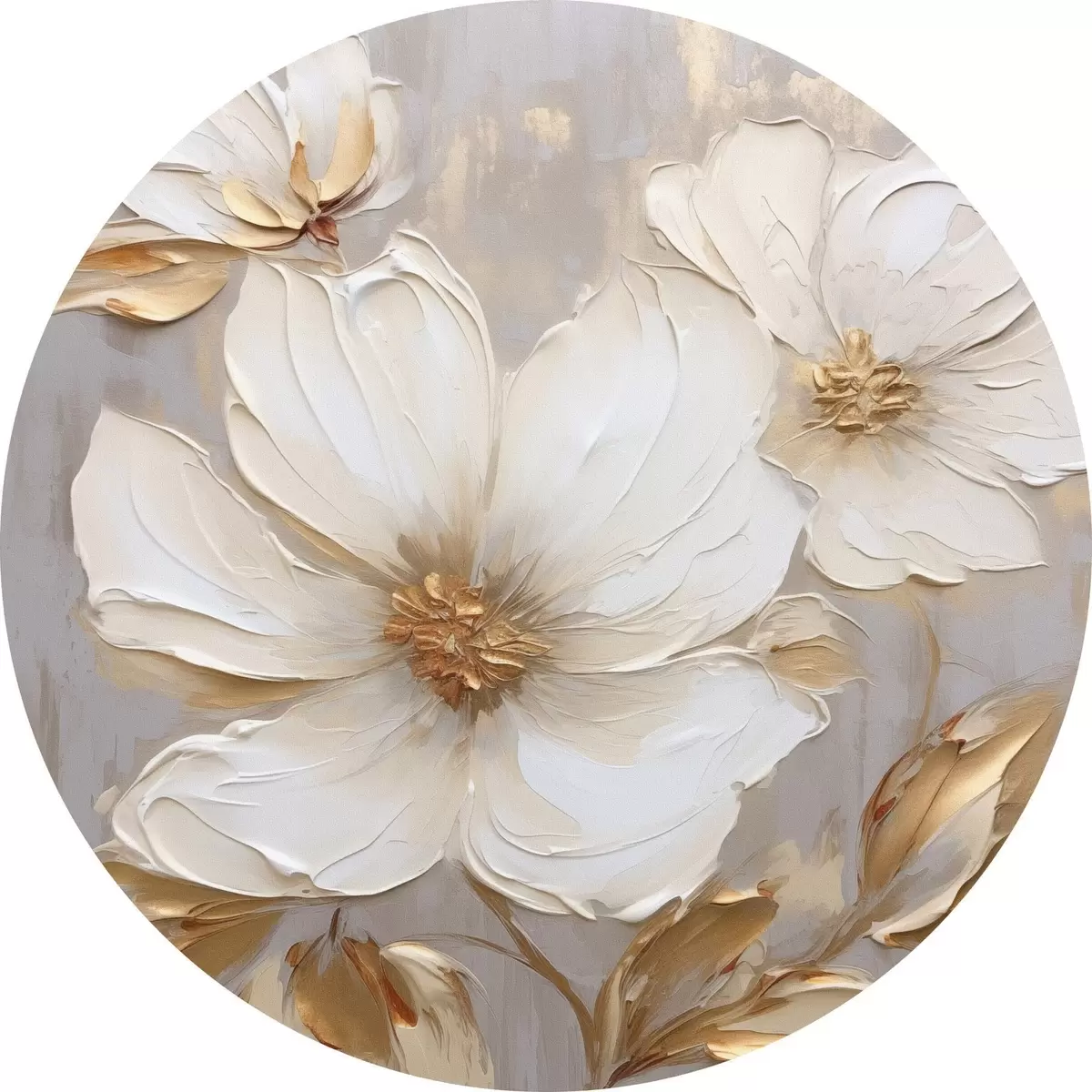 Apaļas gleznas Lieli teksturēti ziedi ar krāsas triepieniem siltā krāsu gamā r46176
