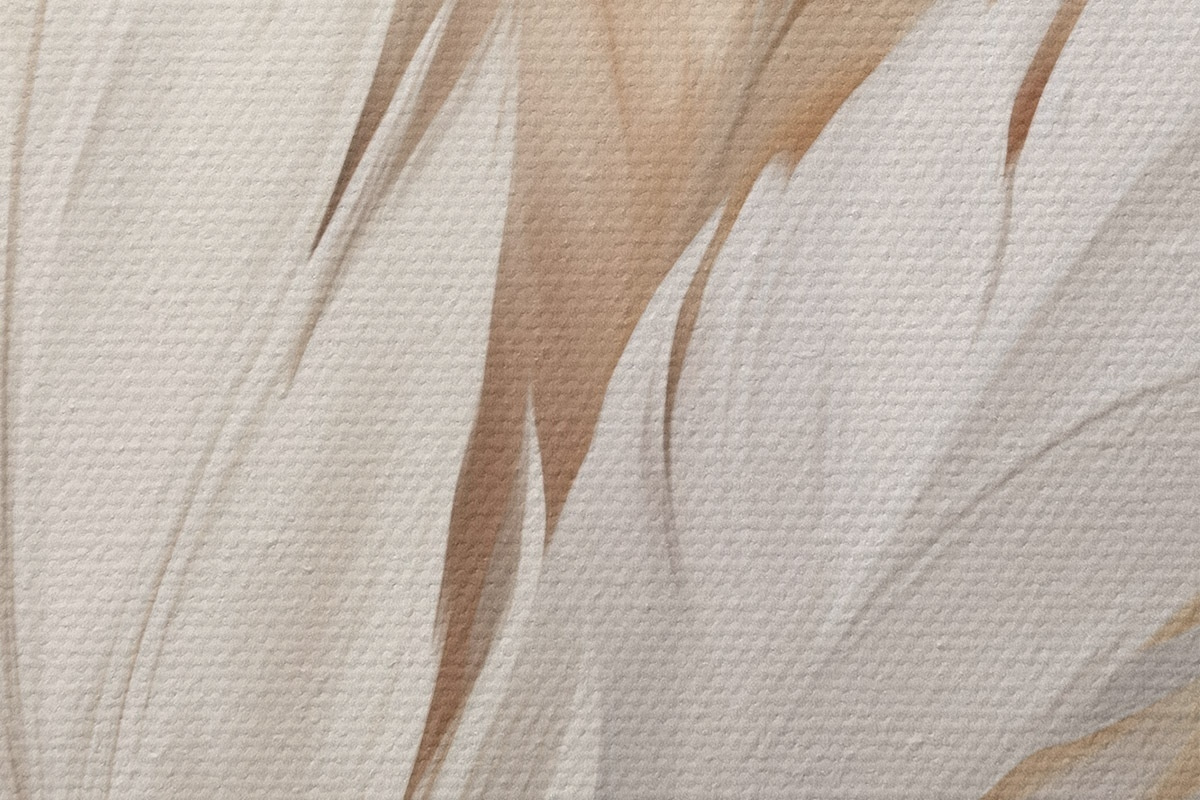 Smalkais diegu pinums uz šī audekla atgādina profesionālu mākslinieku audeklu virsmu.