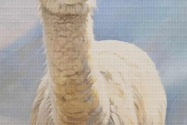 Smalkais diegu pinums uz šī audekla atgādina profesionālu mākslinieku audeklu virsmu.