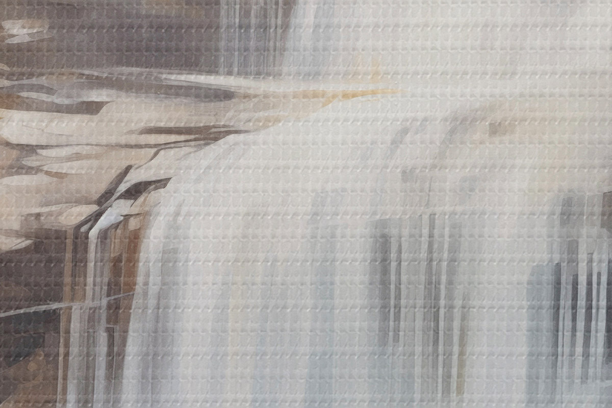 Smalkais diegu pinums uz šī audekla atgādina profesionālu mākslinieku audeklu virsmu.