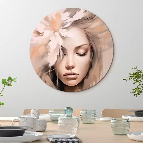 Apaļas gleznas Sievietes portrets ar ziedu r46218