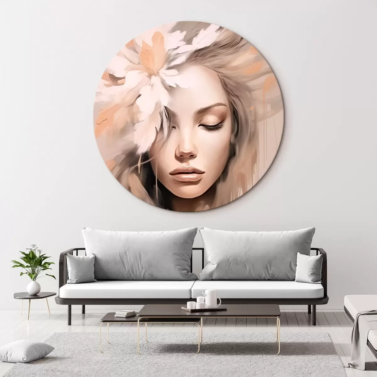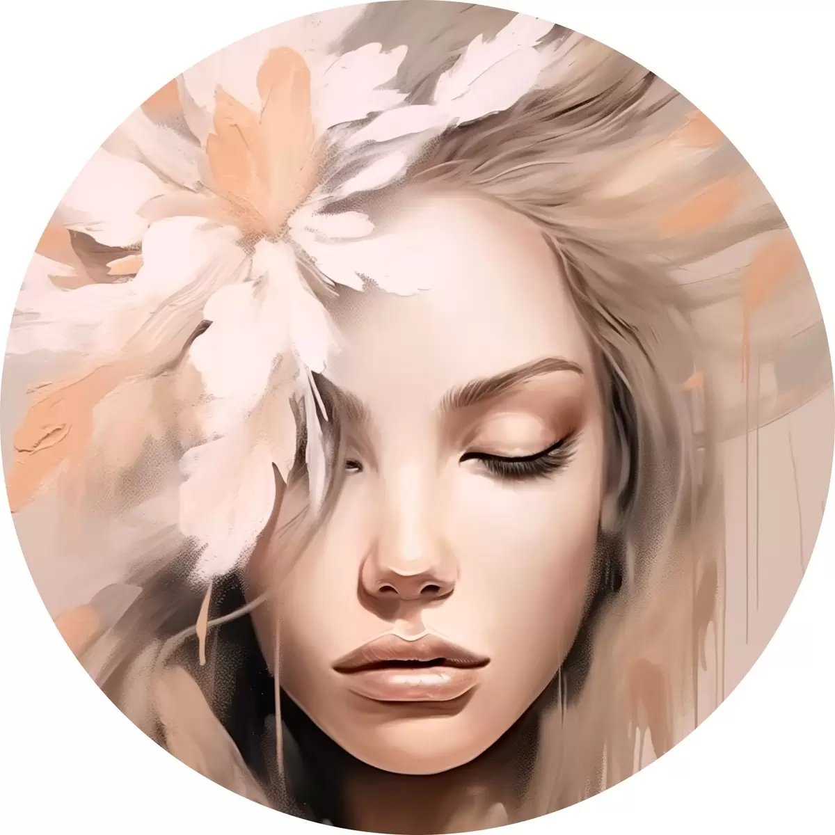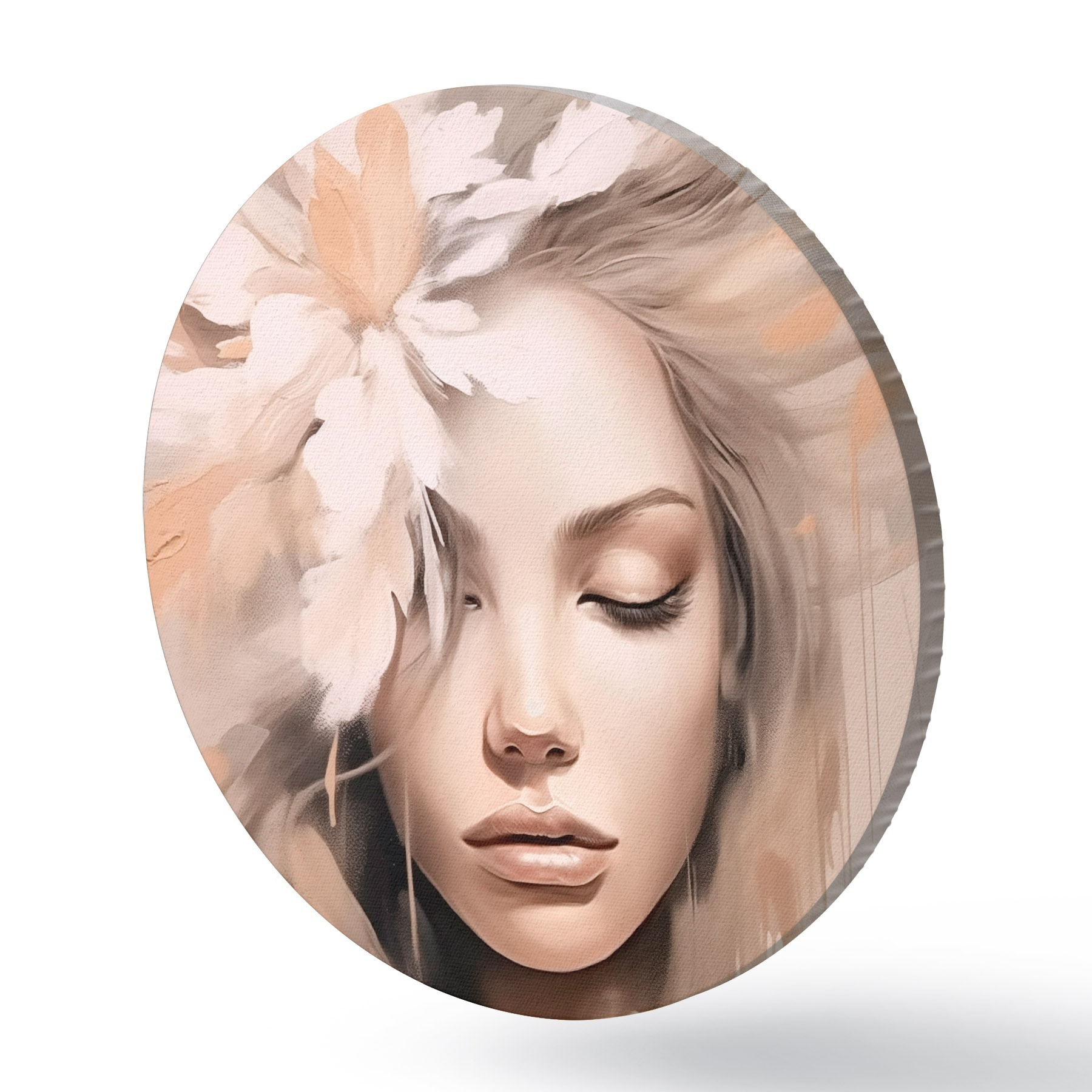 Apaļas gleznas Sievietes portrets ar ziedu r46218