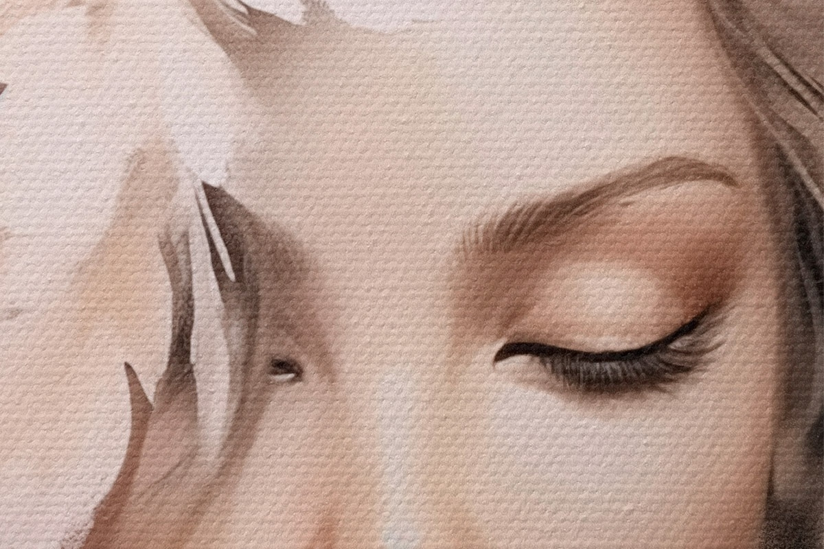 Smalkais diegu pinums uz šī audekla atgādina profesionālu mākslinieku audeklu virsmu.