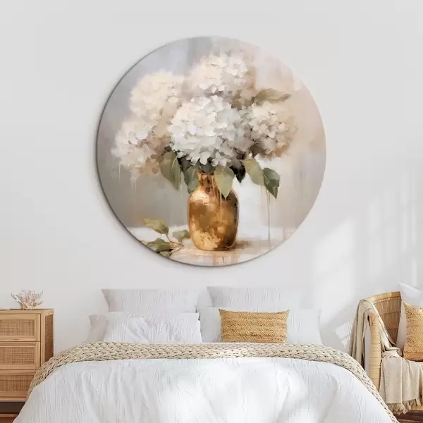 Apaļas gleznas Delikāts hortenziju pušķis vāzē r46263
