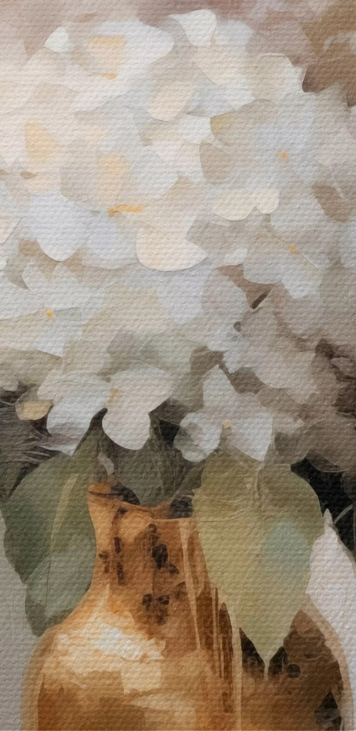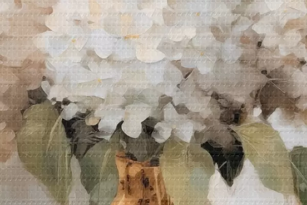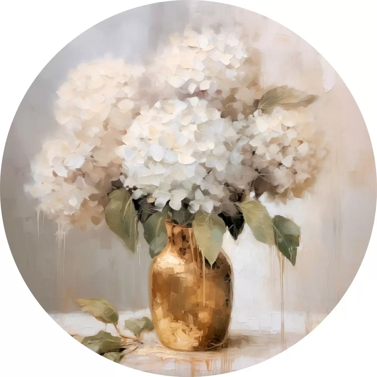 Apaļas gleznas Delikāts hortenziju pušķis vāzē r46263