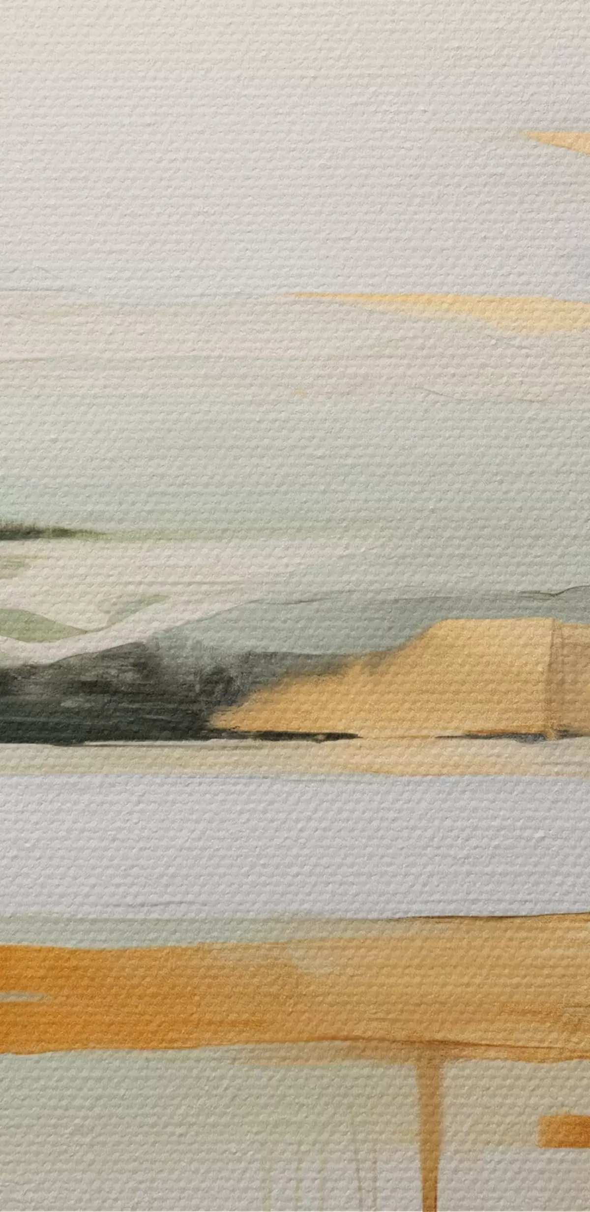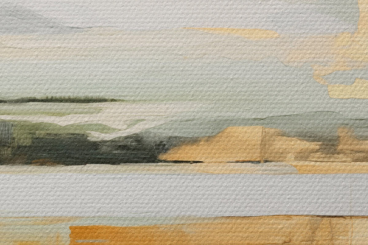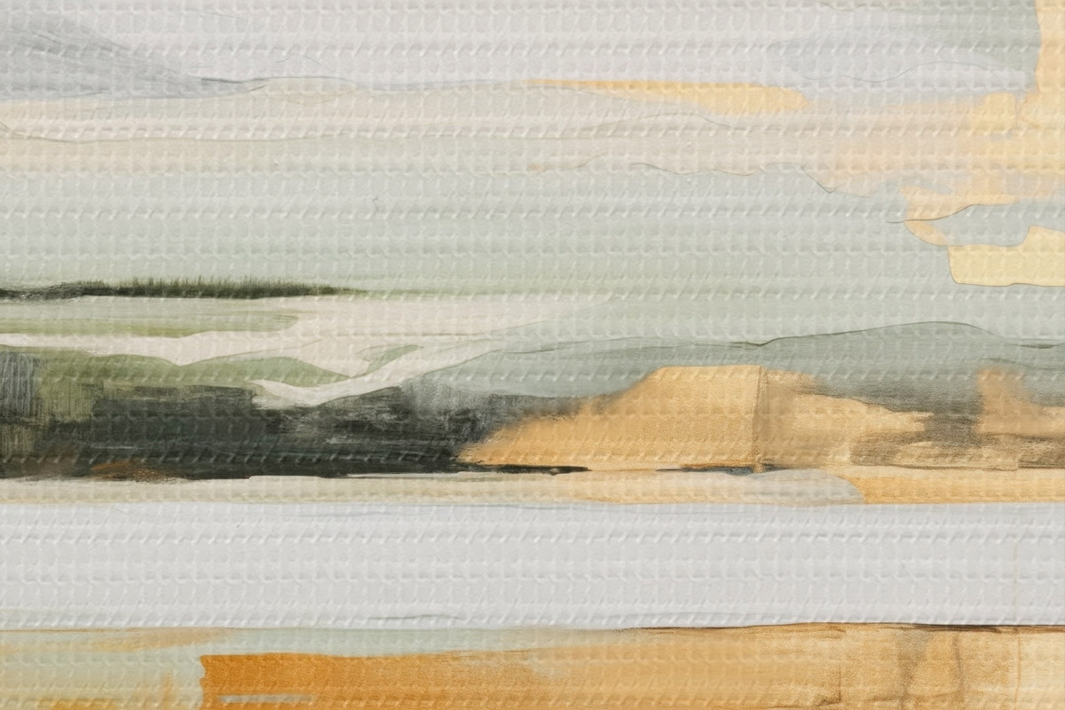 Attēls Abstrakts ainavas attēls ar dzelteniem akcentiem, minimālistiska zemes, ūdens un debesu kompozīcija ar klusinātiem toņiem Nr r46268