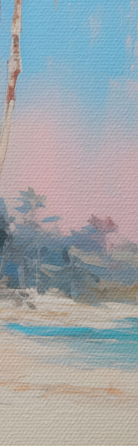 Glezna ir iekārtojama uzreiz pēc tās saņemšanas. Glezna tiks izstiepta uz 2 cm platām koka nestuvēm.