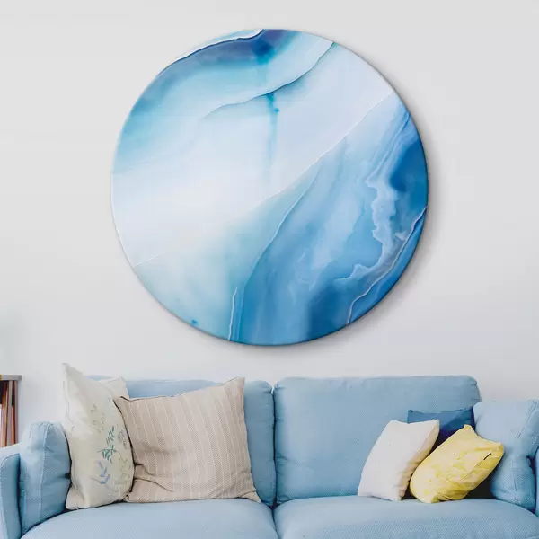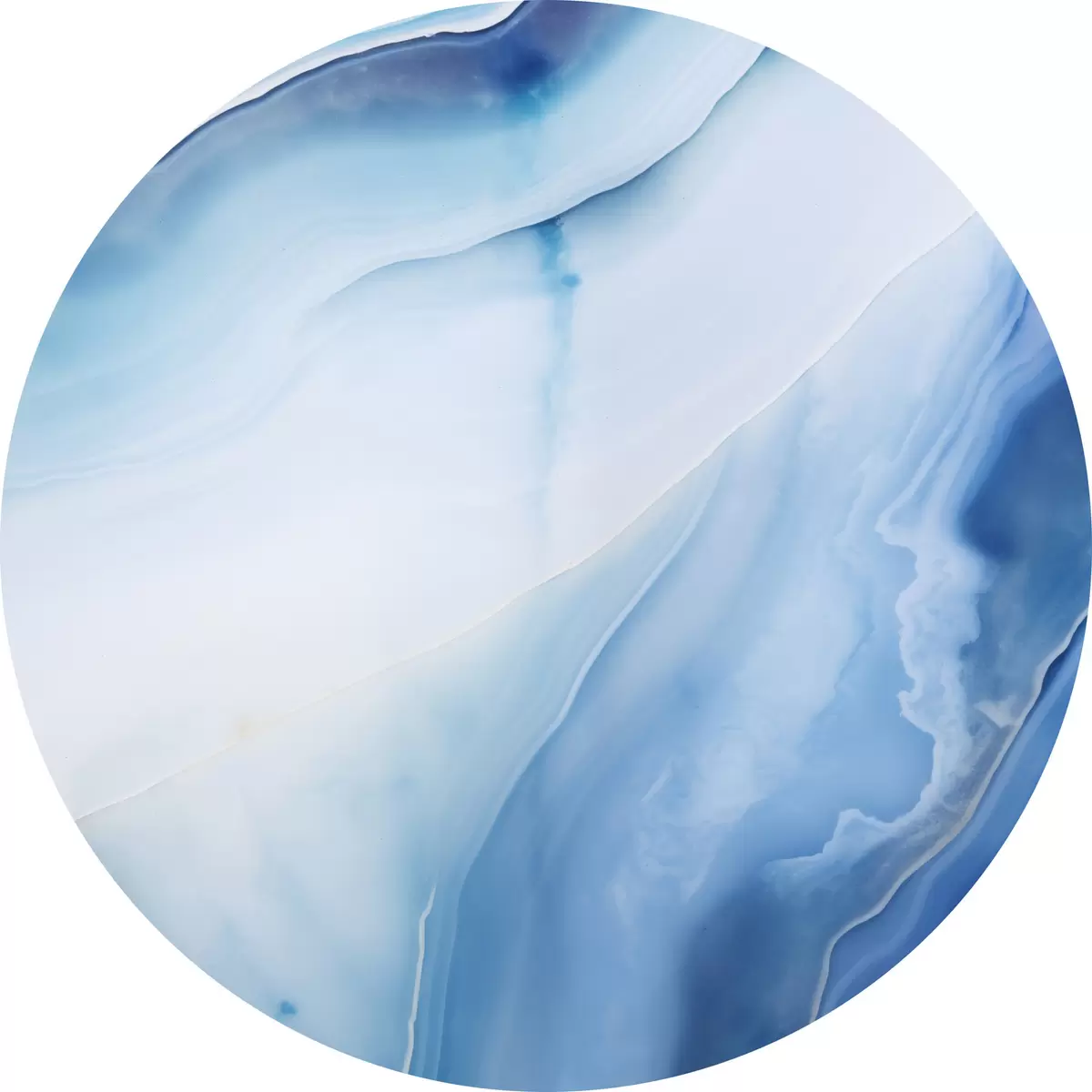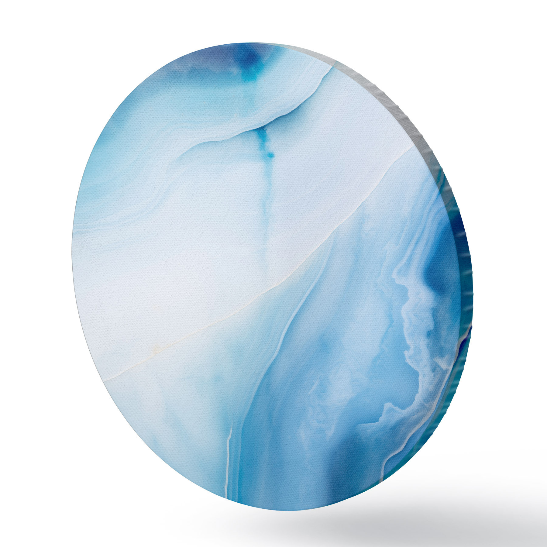 Apaļas gleznas Abstrakts zils un balts agata raksts, virpuļojošas līnijas un gradienti, gluda tekstūra, modernā māksla, minimālisms r46291