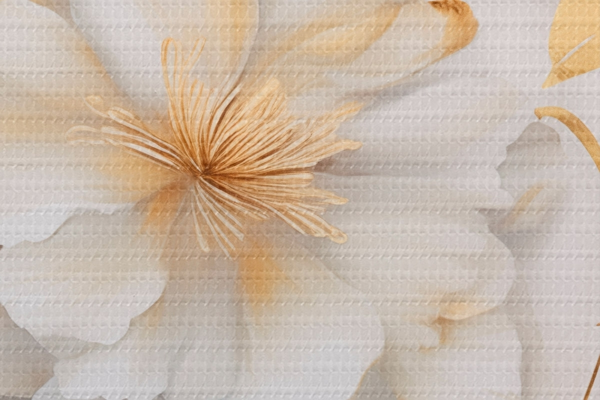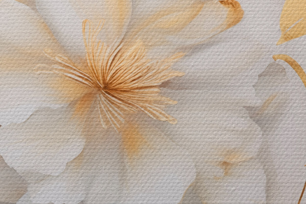Attēls Baltas ziedi ar dzelteniem akcentiem, ziedlapiņas ar smalkiem ēnām, gaišs fons ar smalku marmora efektu Nr r46292