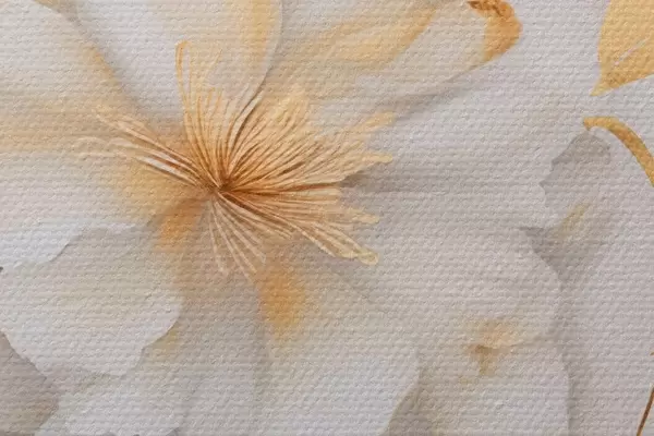 Attēls Baltas ziedi ar dzelteniem akcentiem, ziedlapiņas ar smalkiem ēnām, gaišs fons ar smalku marmora efektu Nr r46292