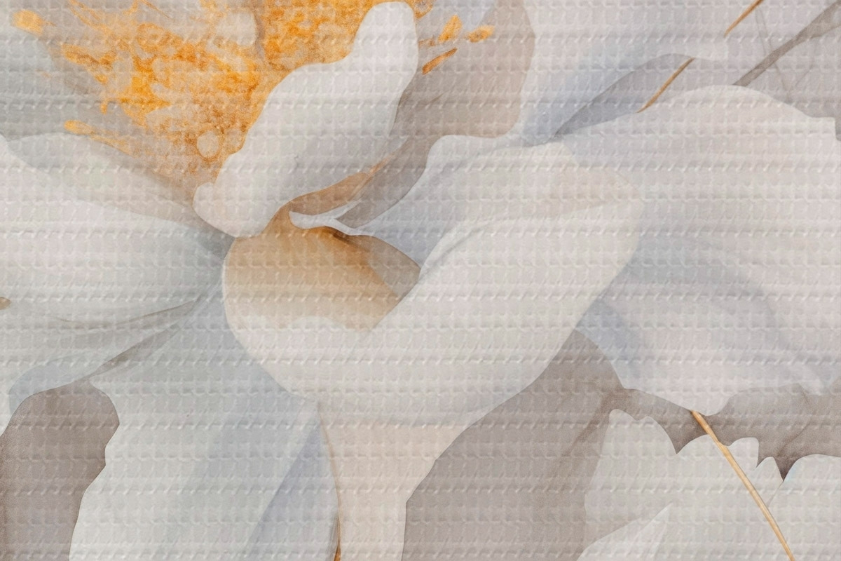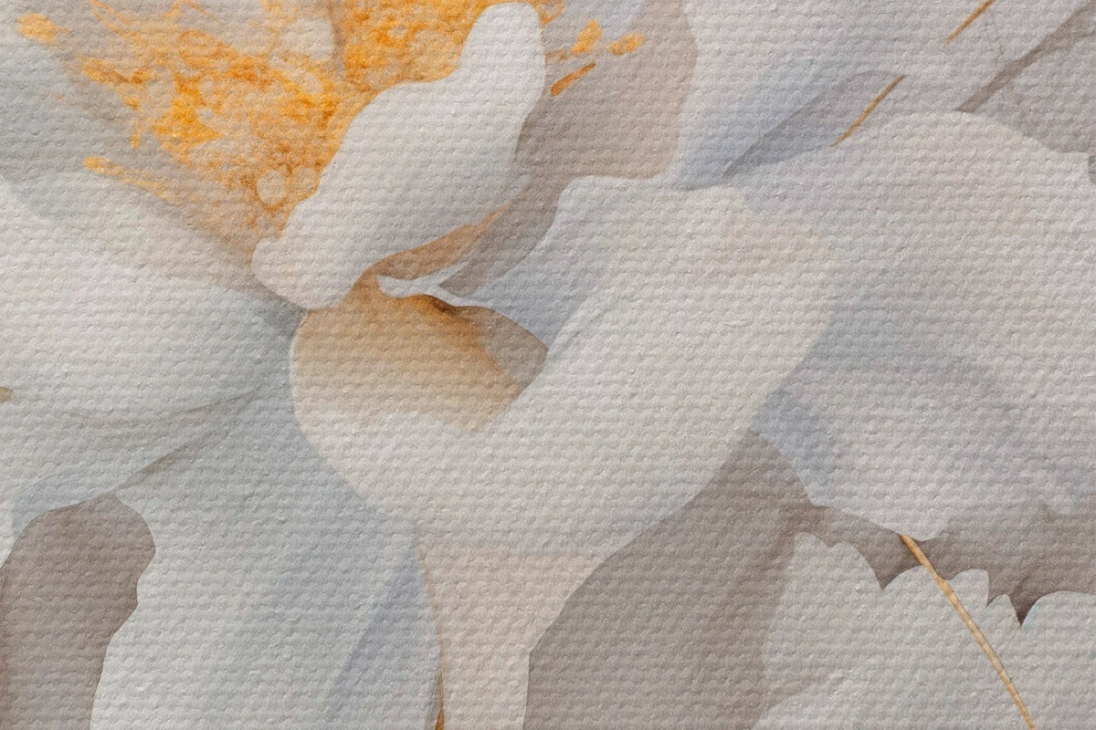 Attēls Baltas ziedi ar dzelteniem pistilām un kātiņiem, maigi ziedlapiņas, elegants kompozīcija, neitrāls fons Nr r46293