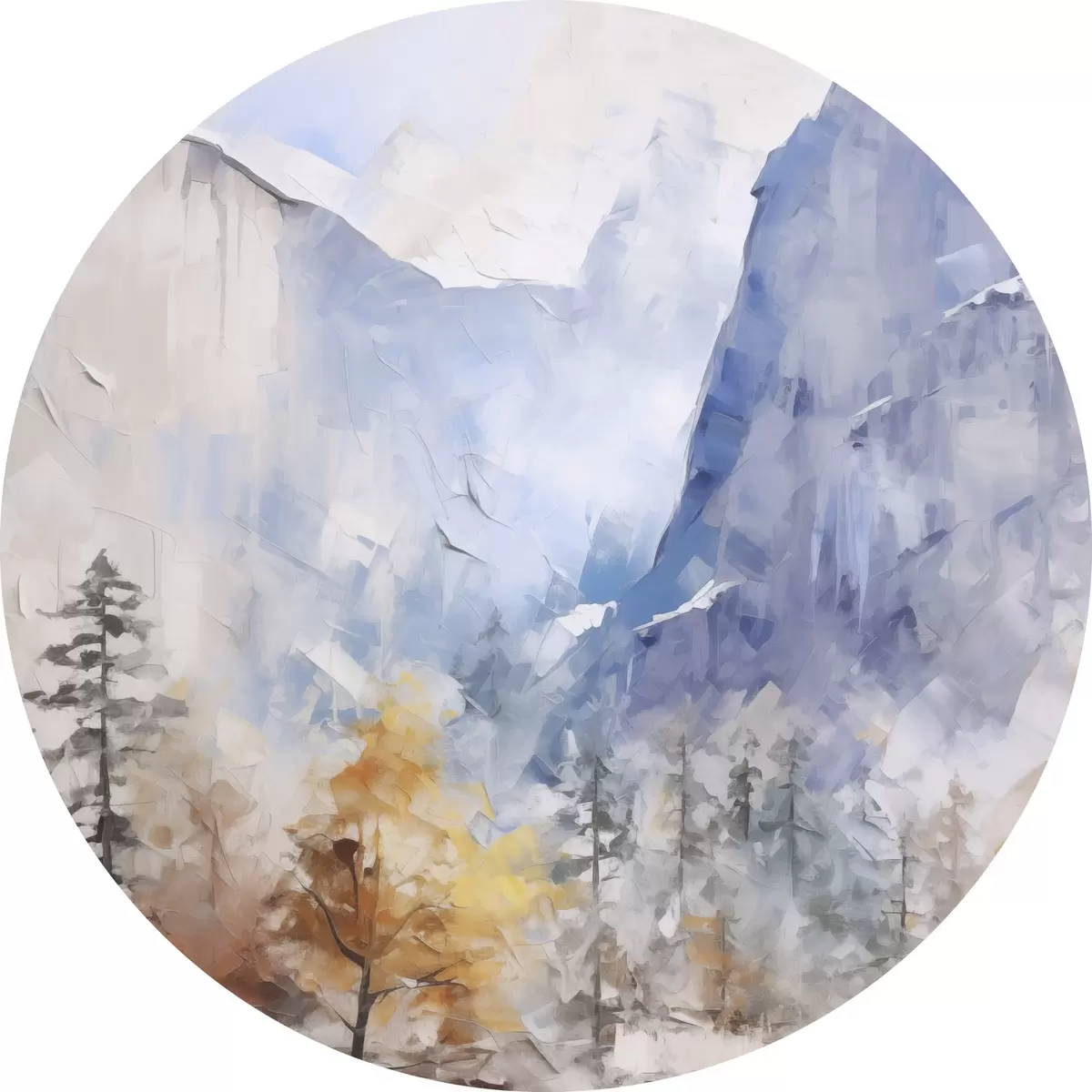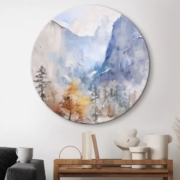 Apaļas gleznas Abstrakts meža ainava kalnu priekšā r46298