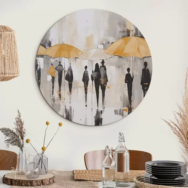 Apaļas gleznas Abstrakcija par cilvēkiem ar lietussargiem r46304