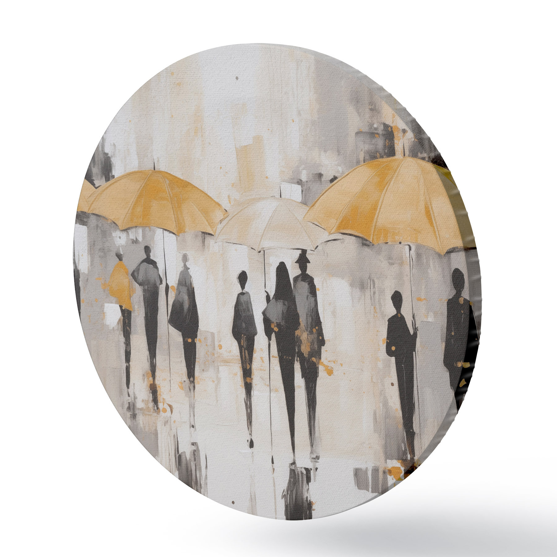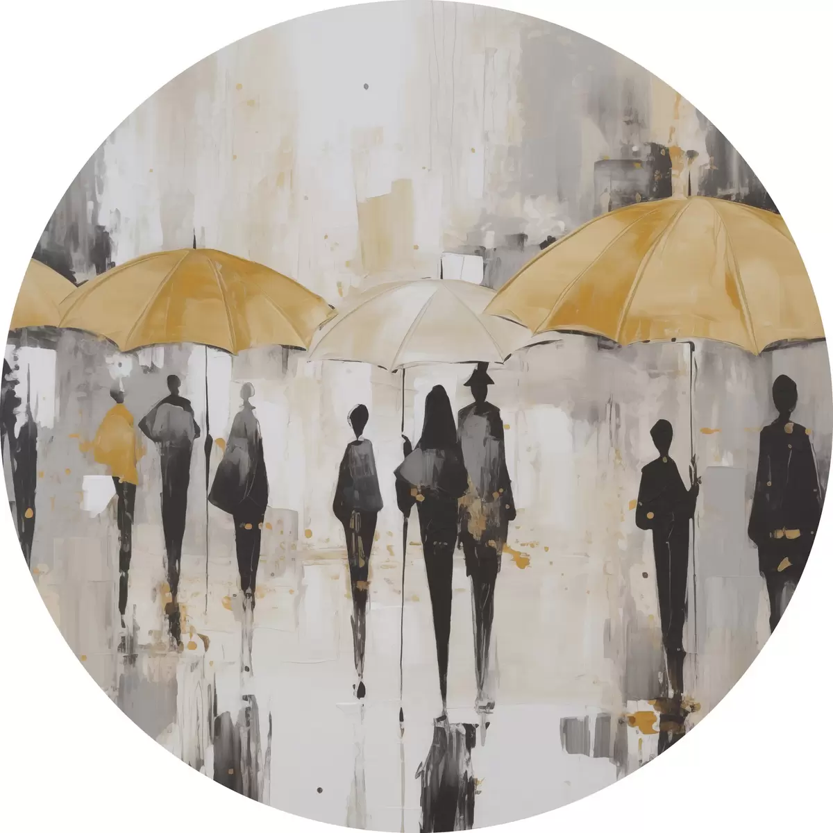 Apaļas gleznas Abstrakcija par cilvēkiem ar lietussargiem r46304