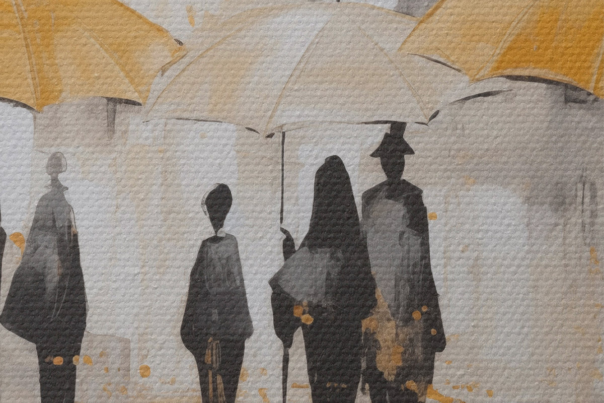 Attēls Abstrakcija par cilvēkiem ar lietussargiem Nr r46304