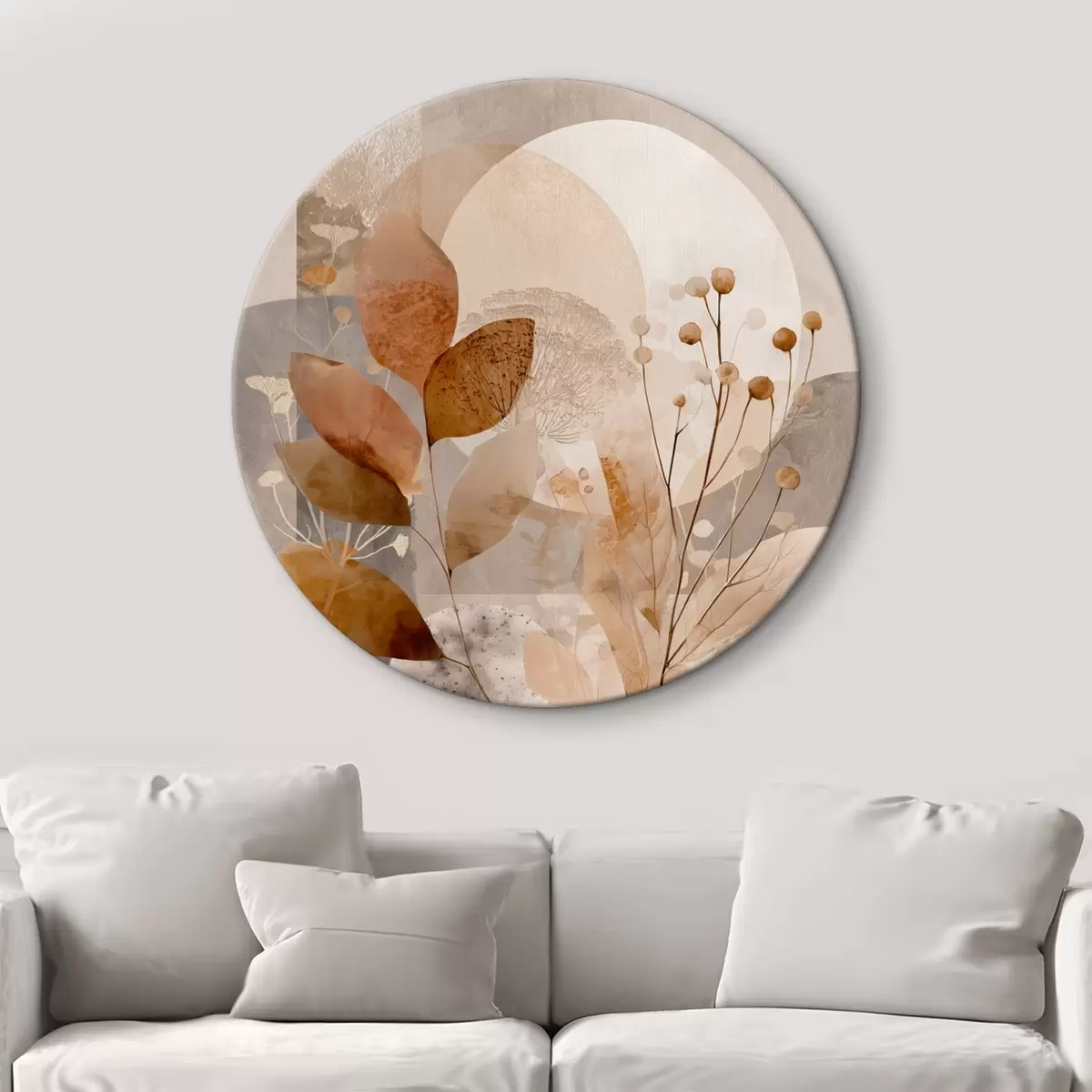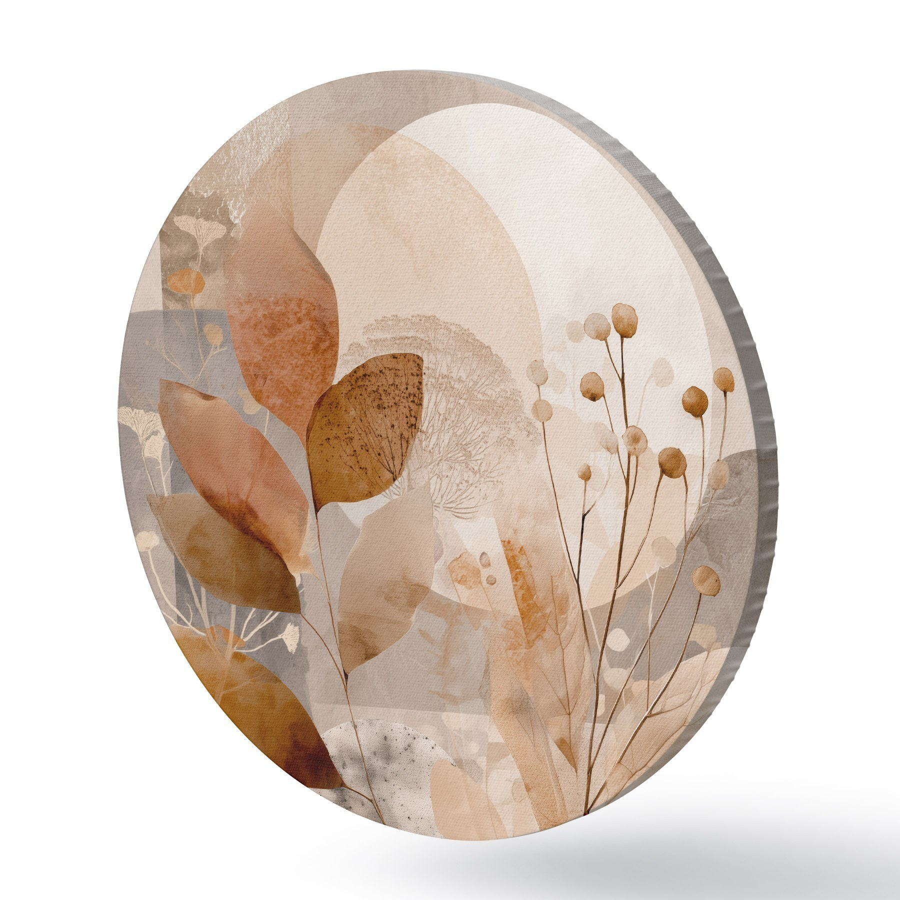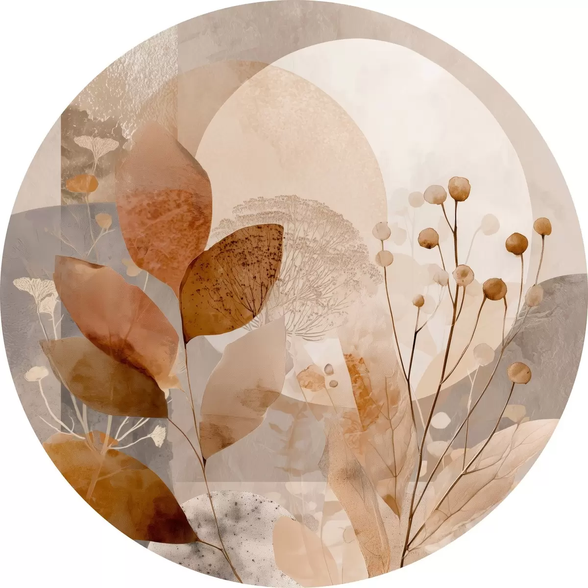 Apaļas gleznas Ziedu raksts smilškrāsā un brūnā krāsā r46308