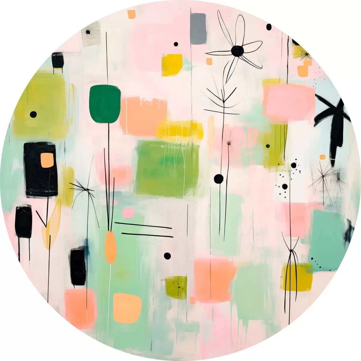 Apaļas gleznas Abstraktas puķes, gaiša kompozīcija eļļas stilā r46325