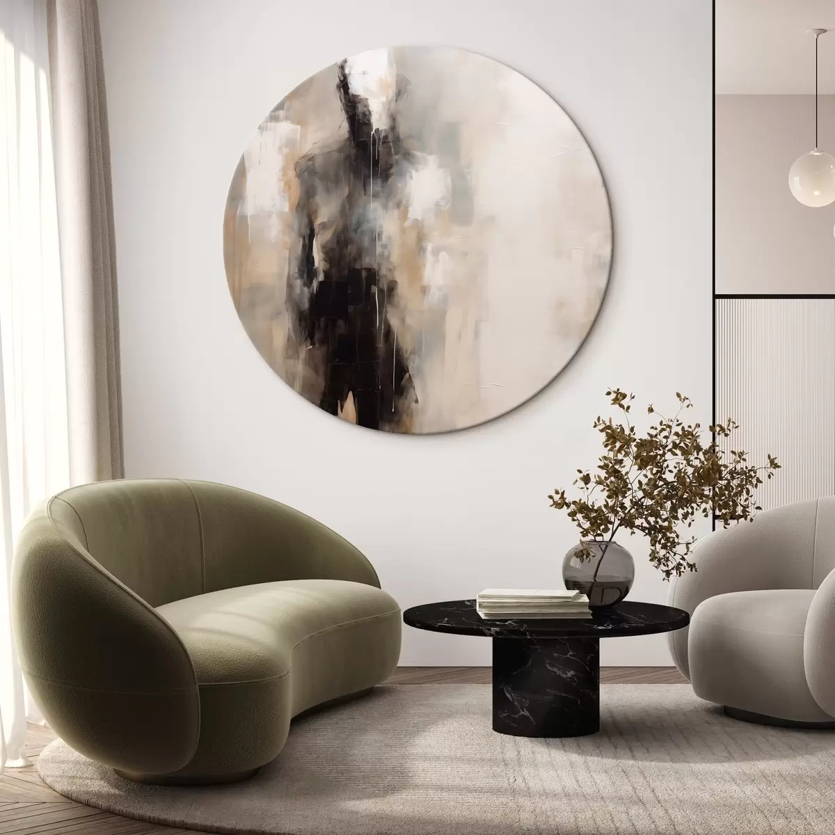 Apaļas gleznas Abstrakta cilvēka figūra ēnās r46360