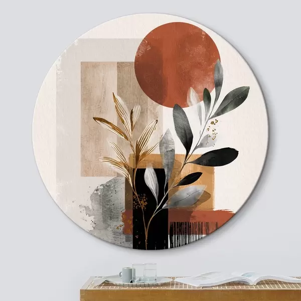 Apaļas gleznas Ģeometrija un lapu abstrakcija r46388