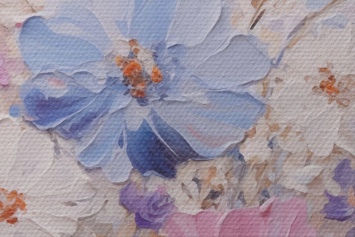 Smalkais diegu pinums uz šī audekla atgādina profesionālu mākslinieku audeklu virsmu.