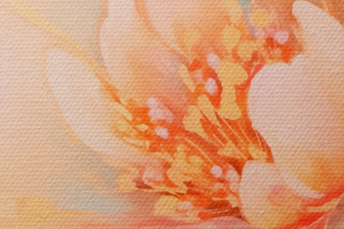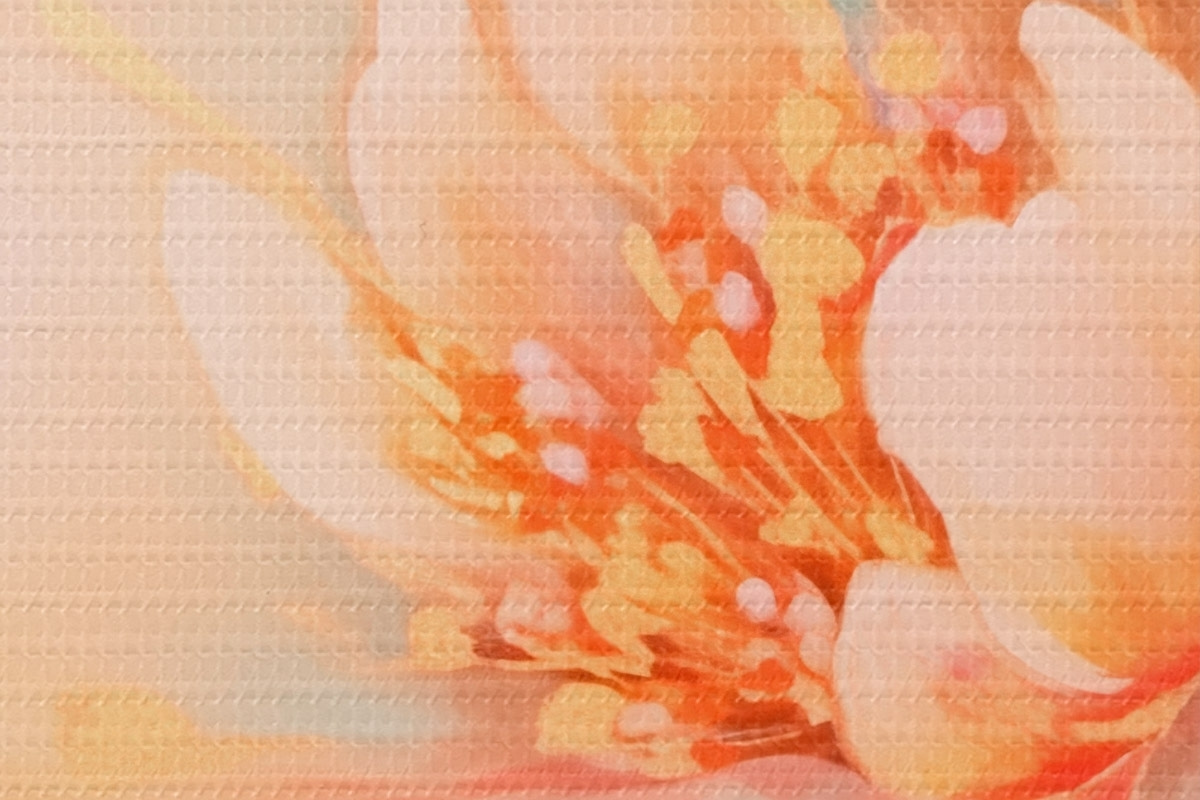 Smalkais diegu pinums uz šī audekla atgādina profesionālu mākslinieku audeklu virsmu.