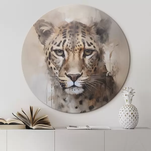 Apaļas gleznas Leoparda imitācijas glezna r46434