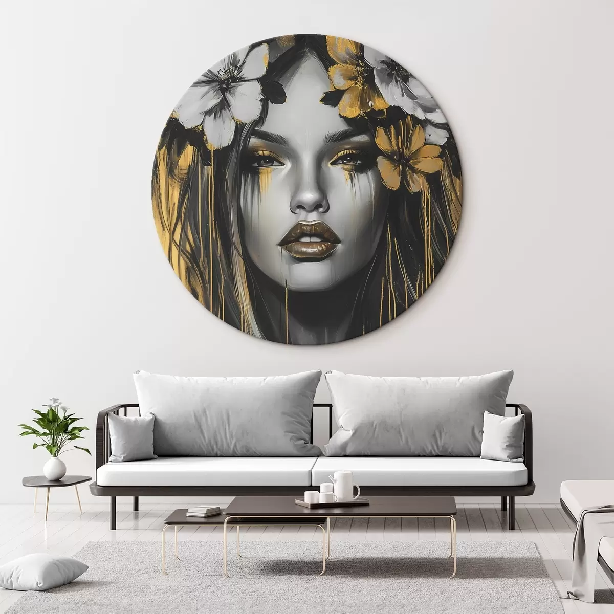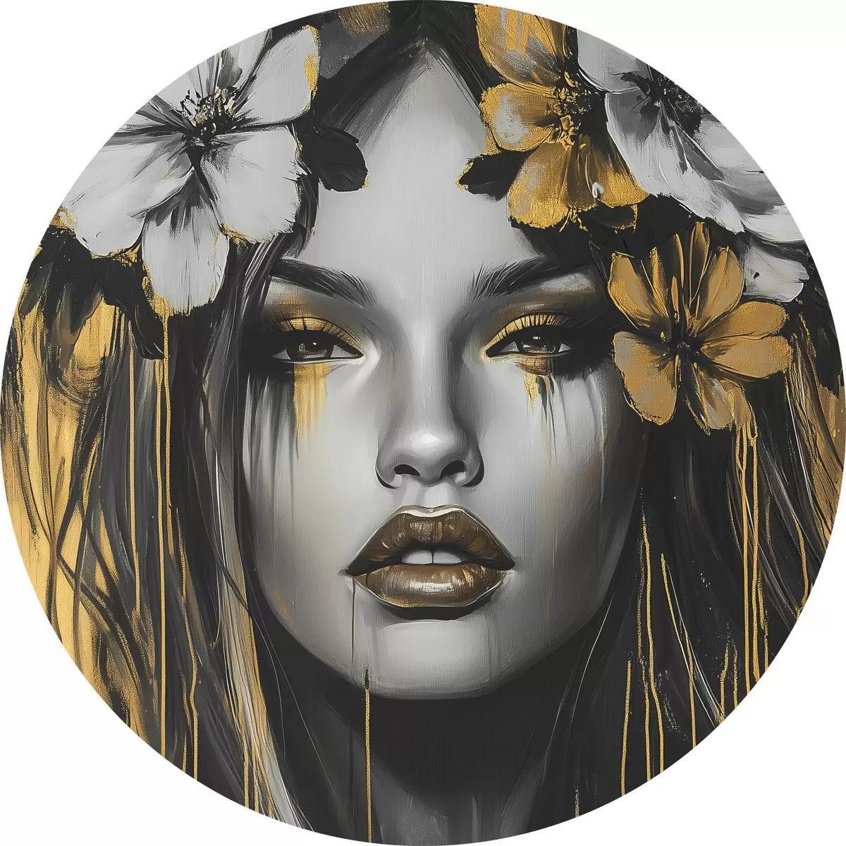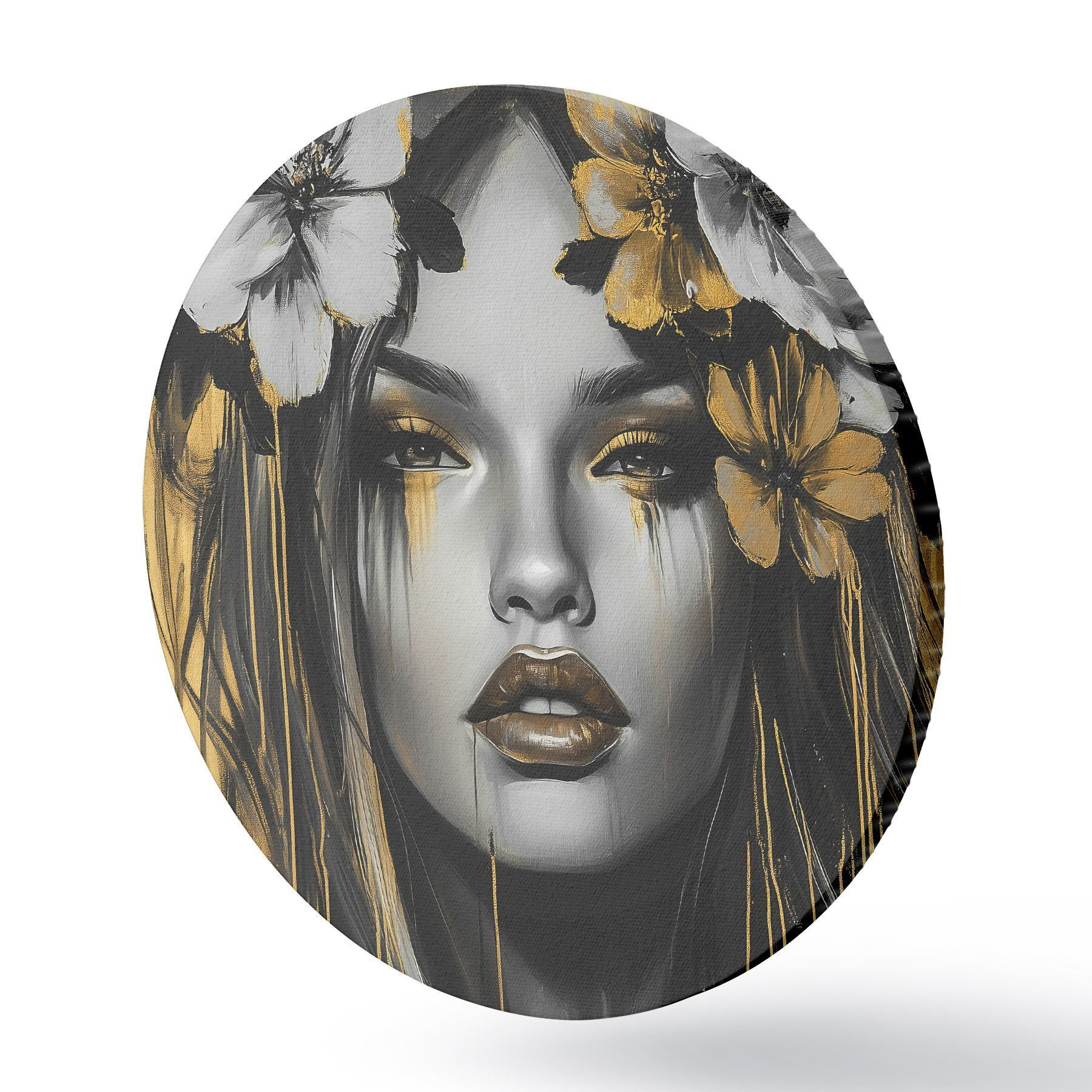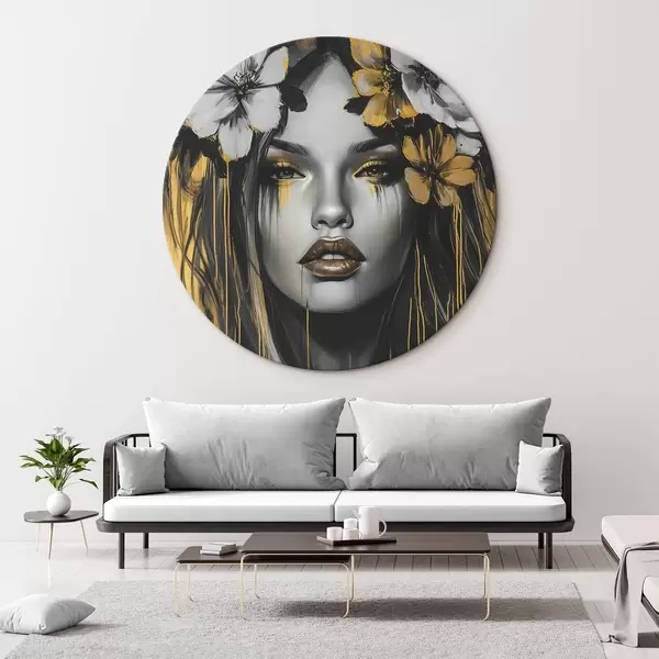 Apaļas gleznas Abstrakts sievietes portrets ar ziediem r46454