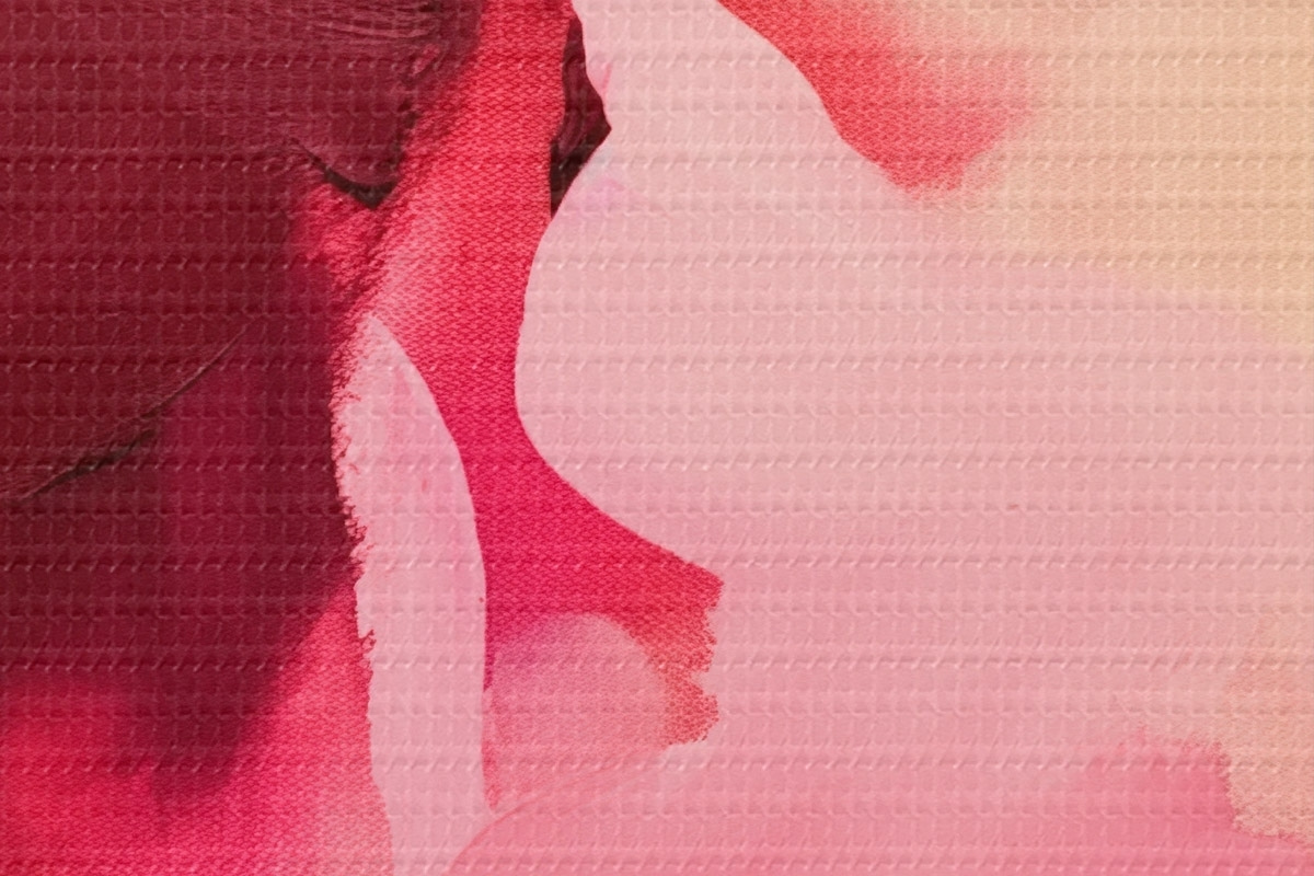 Smalkais diegu pinums uz šī audekla atgādina profesionālu mākslinieku audeklu virsmu.