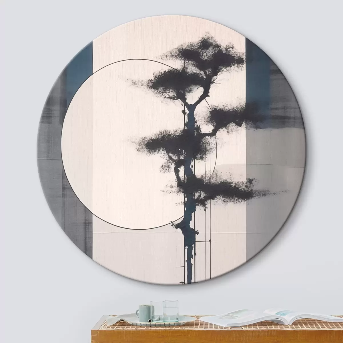 Apaļas gleznas Abstrakcija. Koks un saule. Japāņu minimālisms r46463