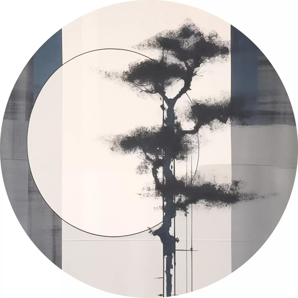 Apaļas gleznas Abstrakcija. Koks un saule. Japāņu minimālisms r46463